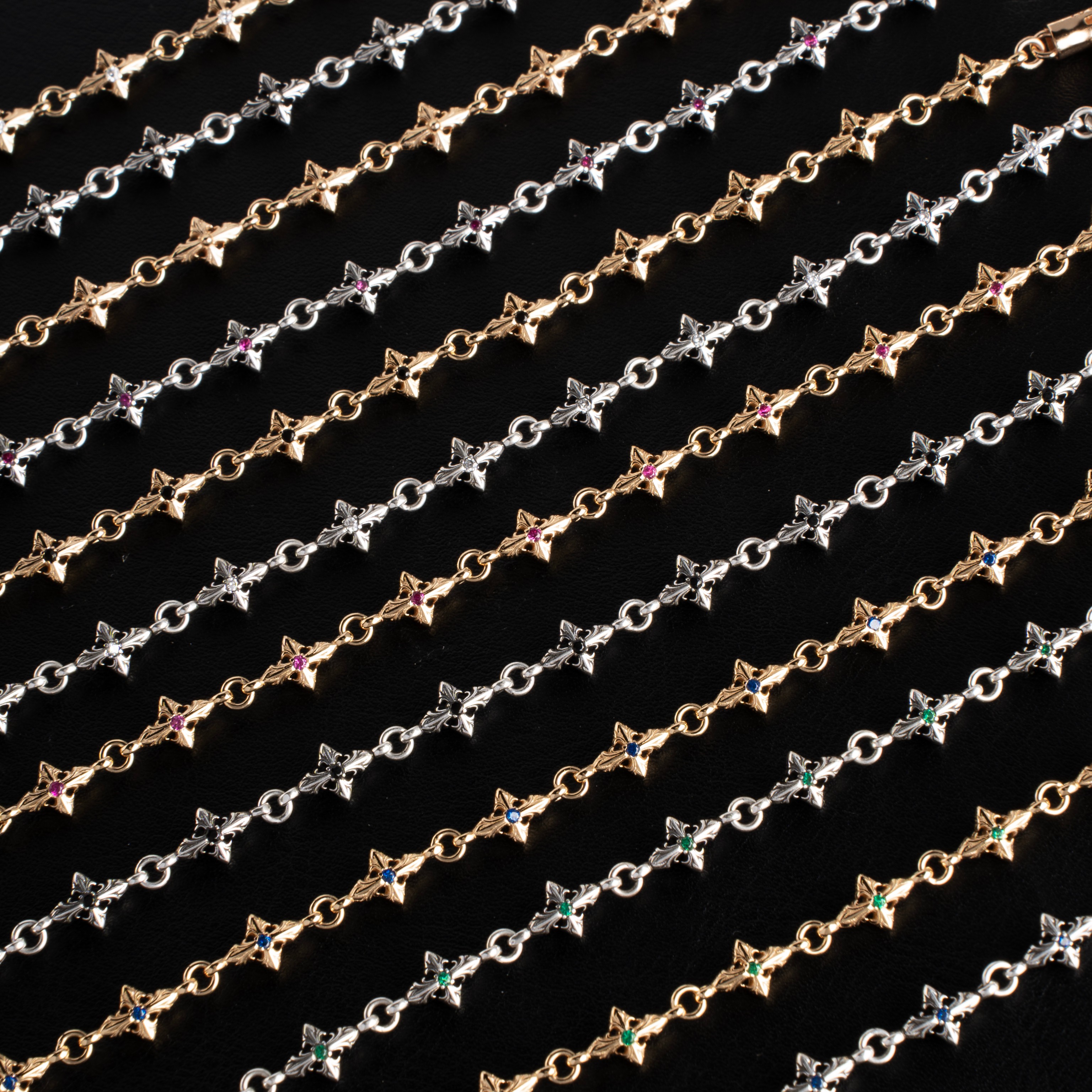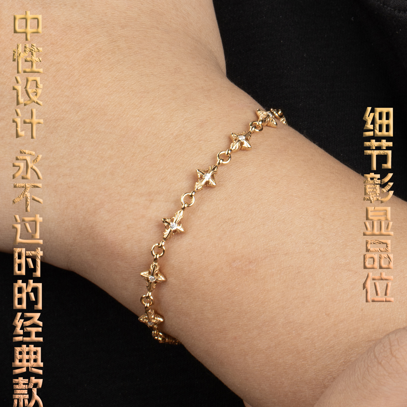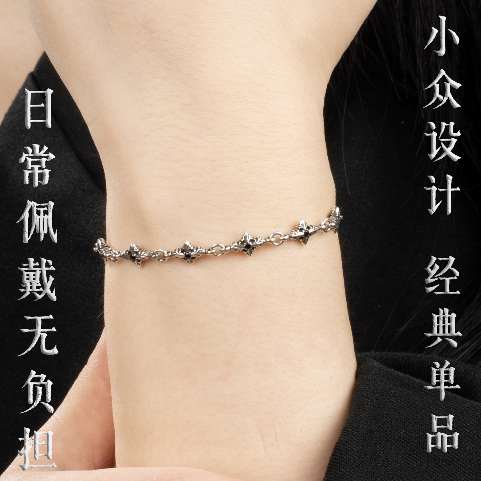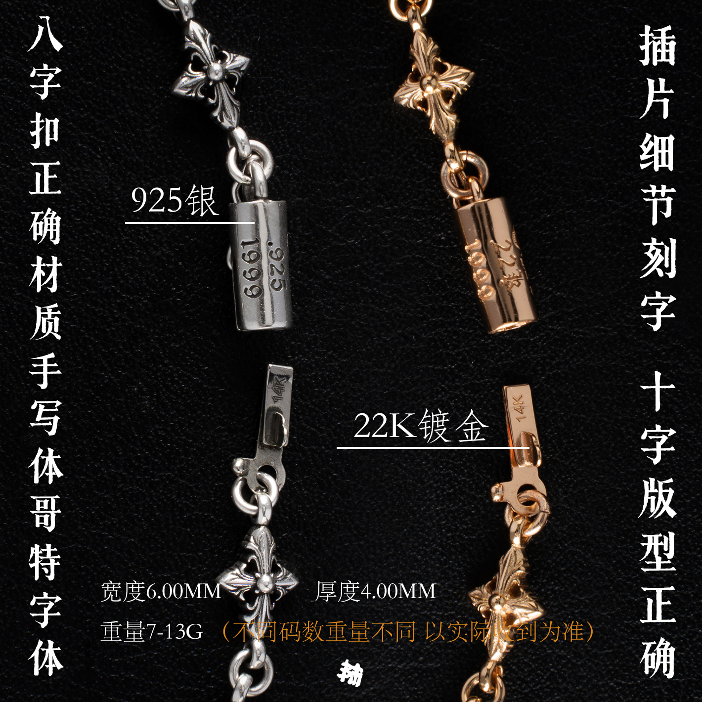 宗克罗心十字花手链22K镶嵌钻石拼接男女同款925纯银镀金潮流复古