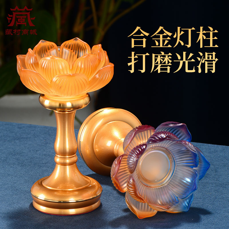 琉璃莲花酥油灯盏灯座家用蜡烛台佛前供灯长明灯摆件