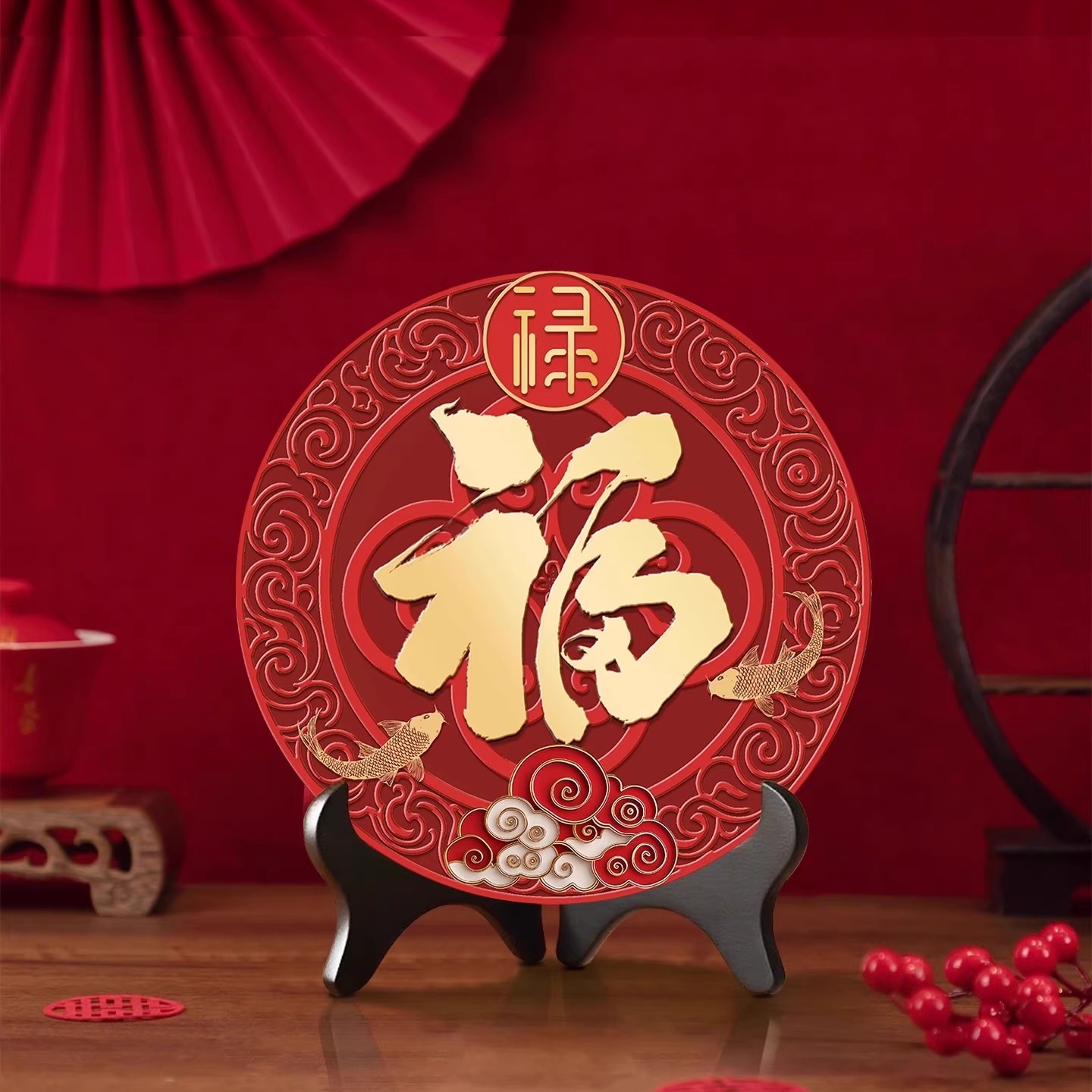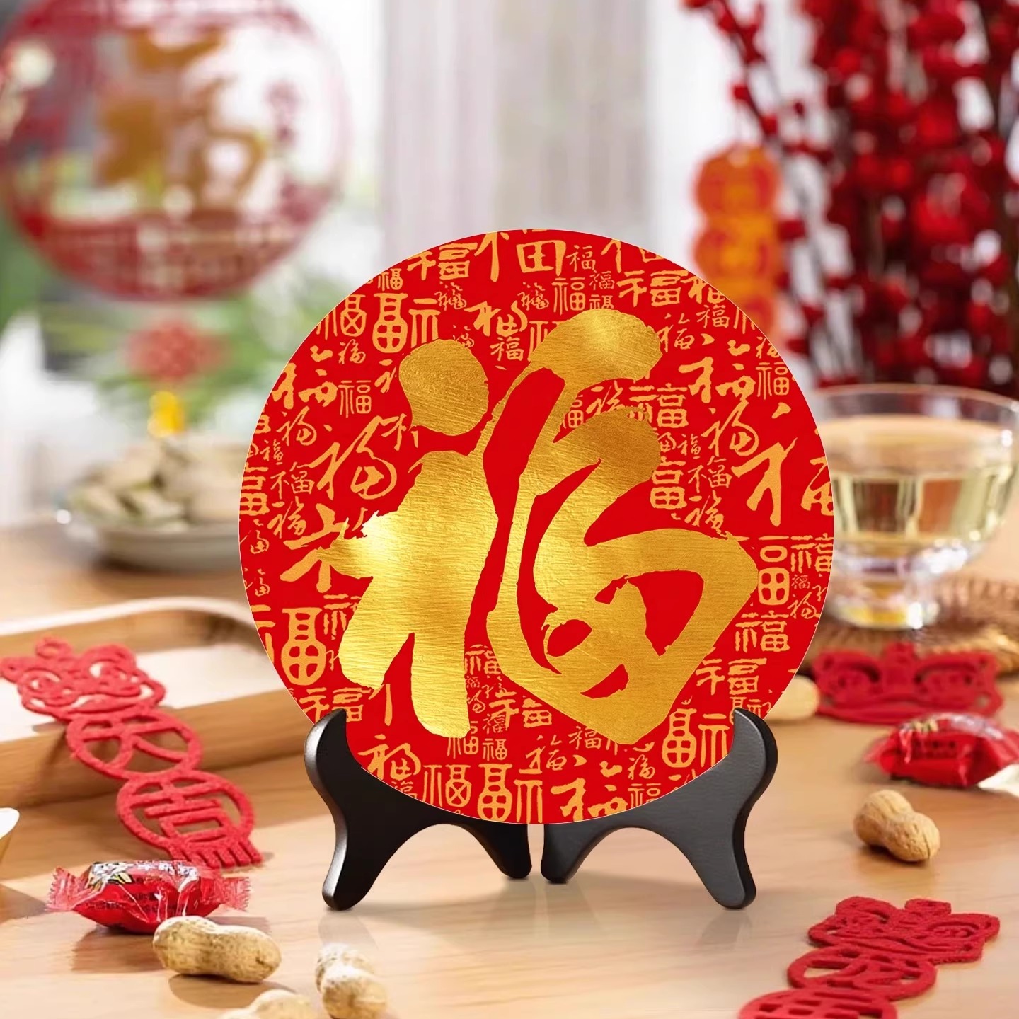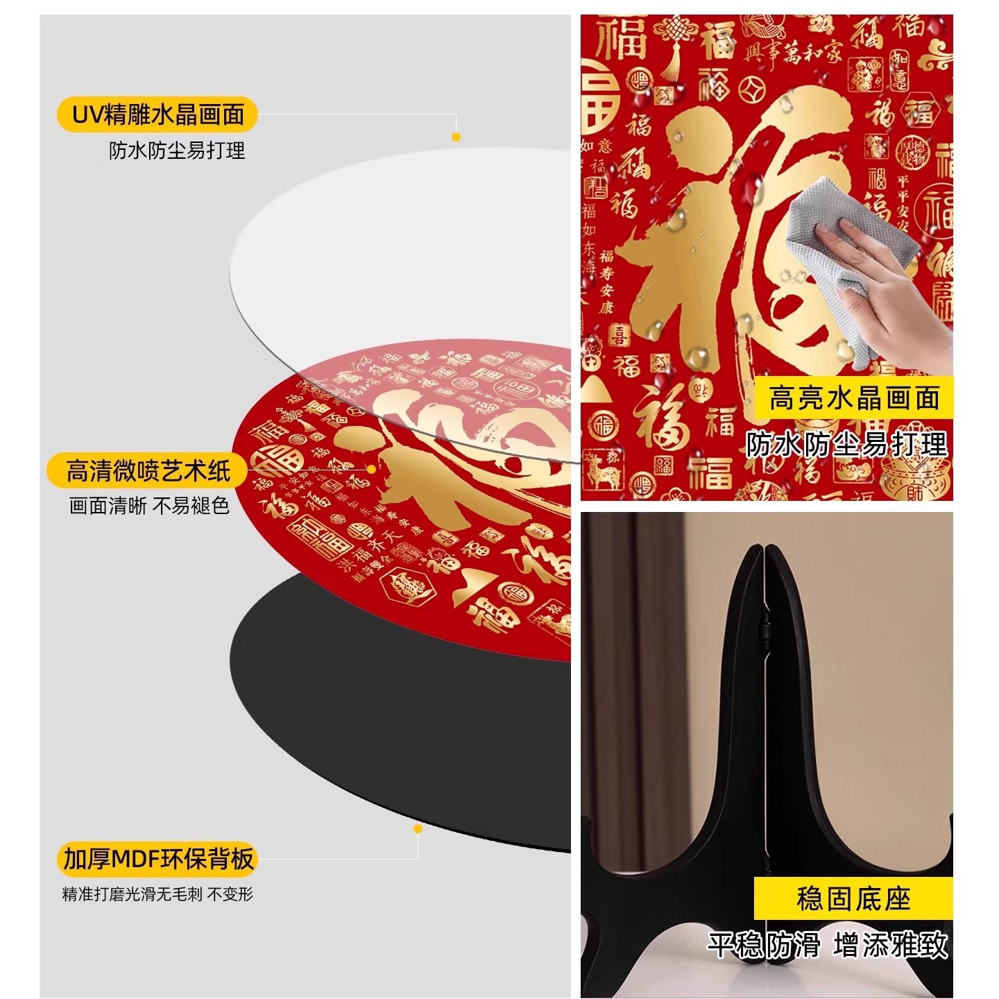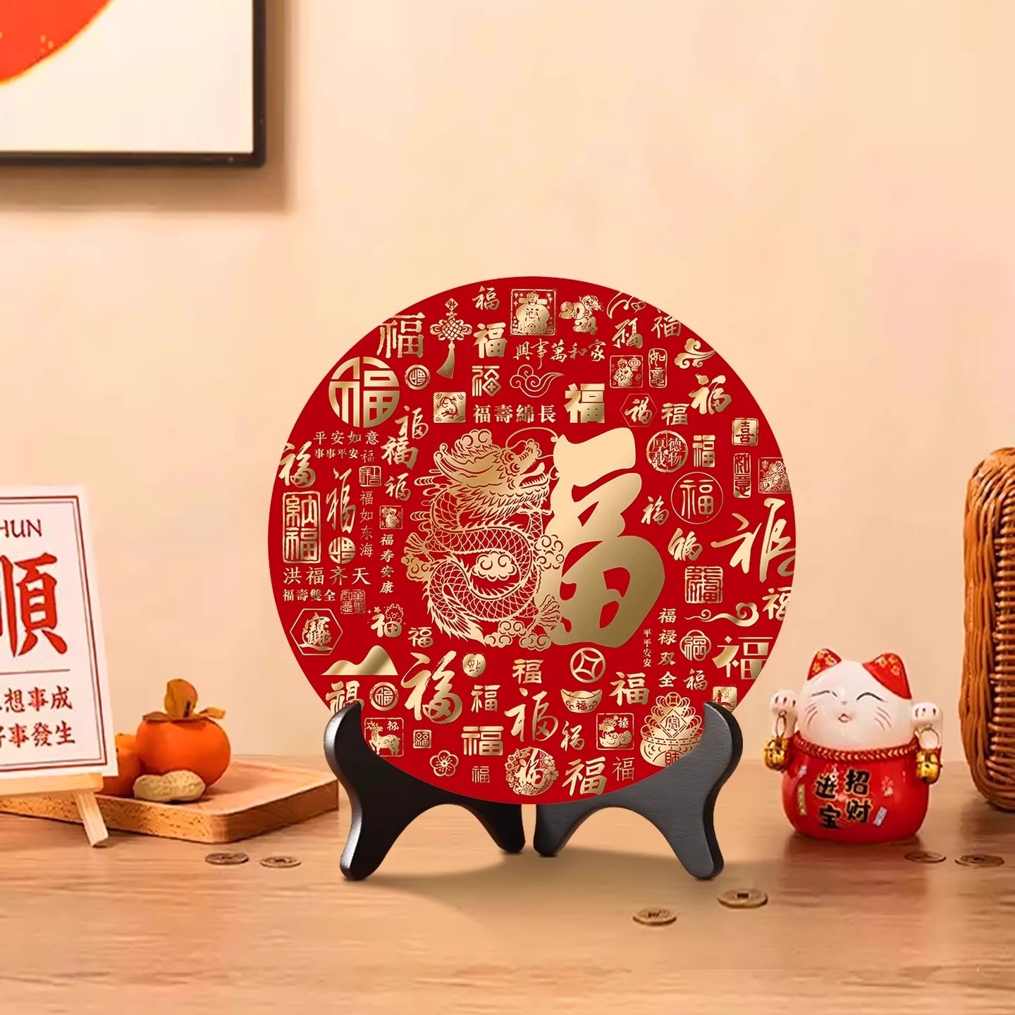 新中式百福图圆形摆台乔迁送礼福字相框装饰品过年喜庆桌面摆画