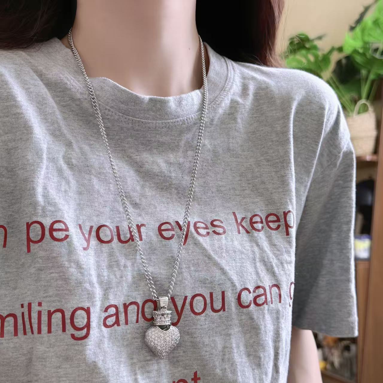 叶莎陈太同款辣妹超闪锆石满钻黄冈桃心吊坠INS叠戴锁骨链项链女