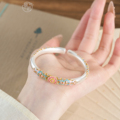 老银匠s999足银手镯光面推拉银手镯素圈送女友简约真纯银镯子女士