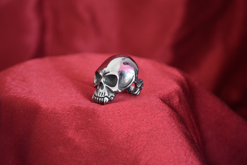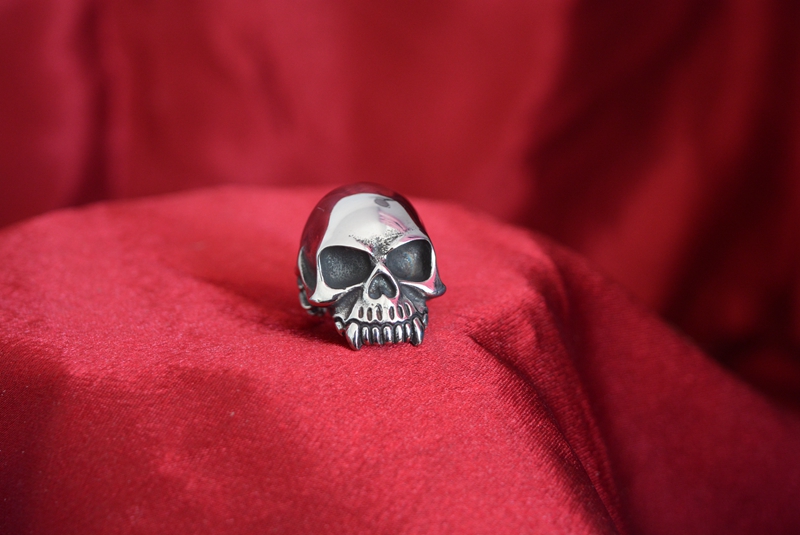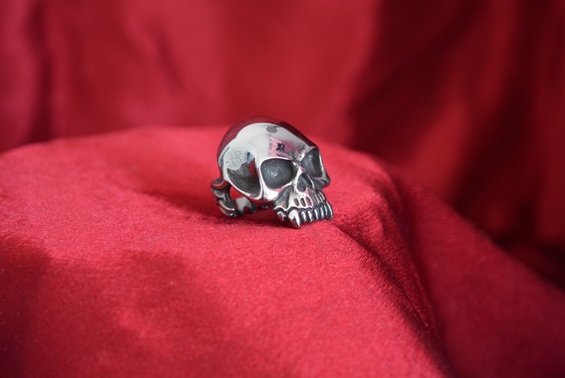 钛钢戒指男女同款中世纪复古做旧呲牙骷髅头夸张另类朋克风指环