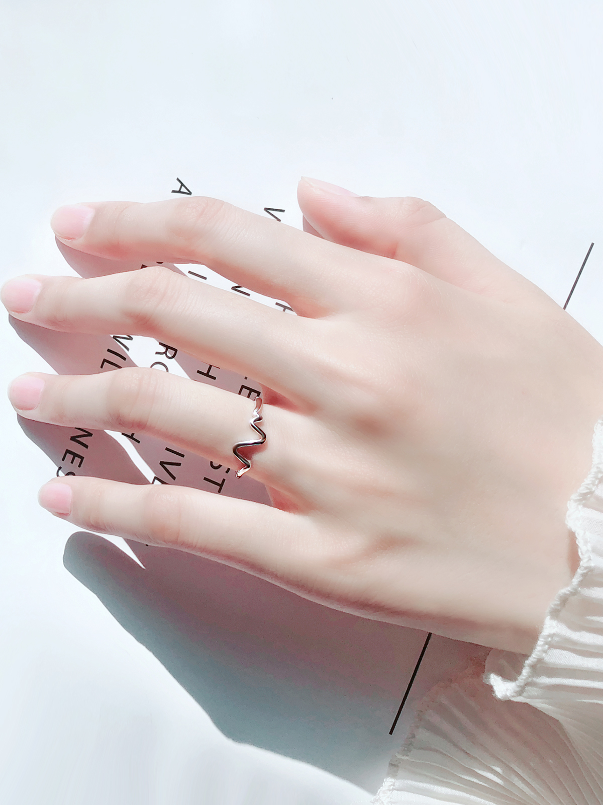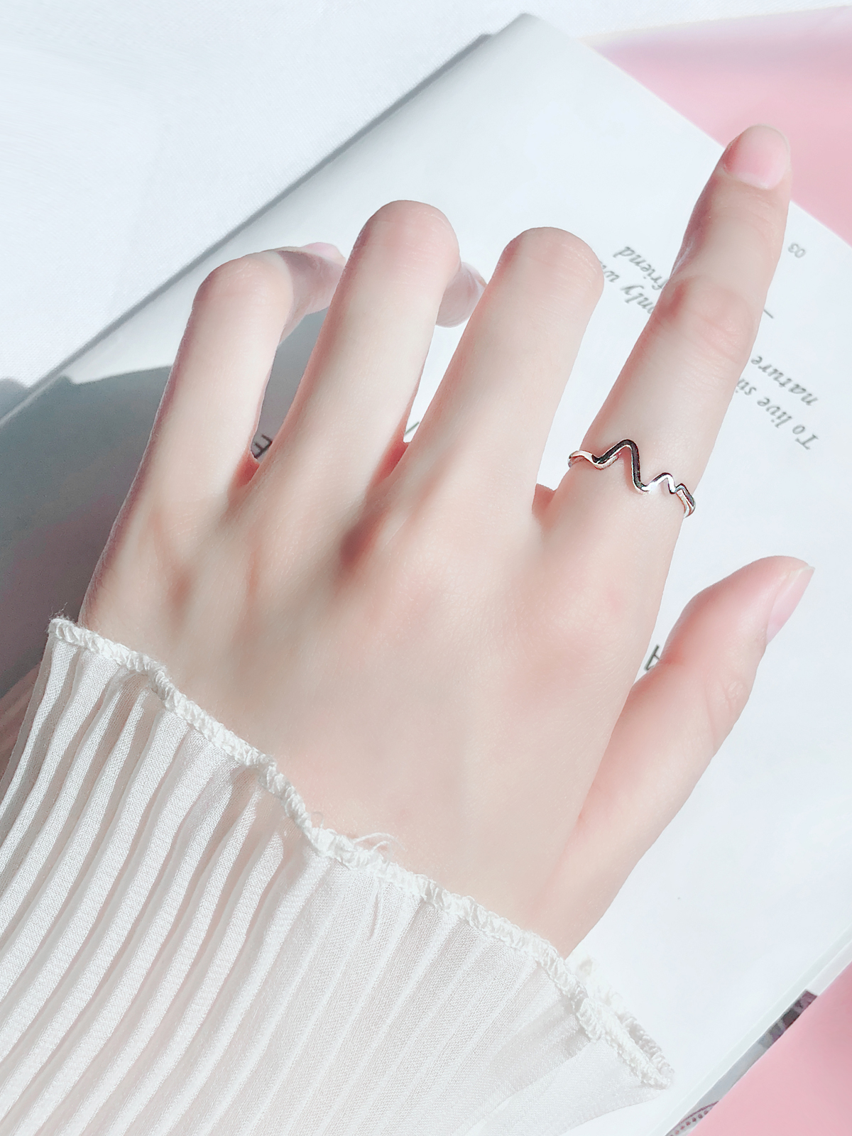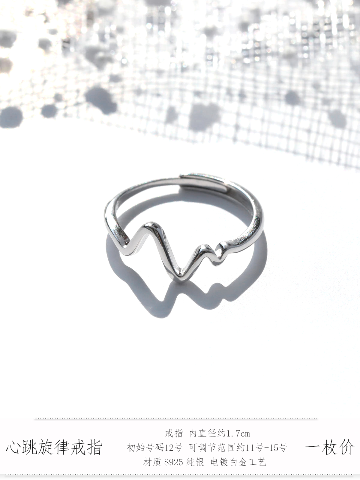 bling手作[心跳]S925纯银食指戒指情侣日韩简约学生对戒一对女男
