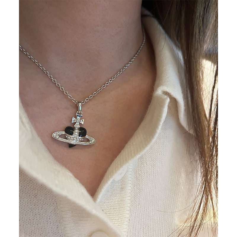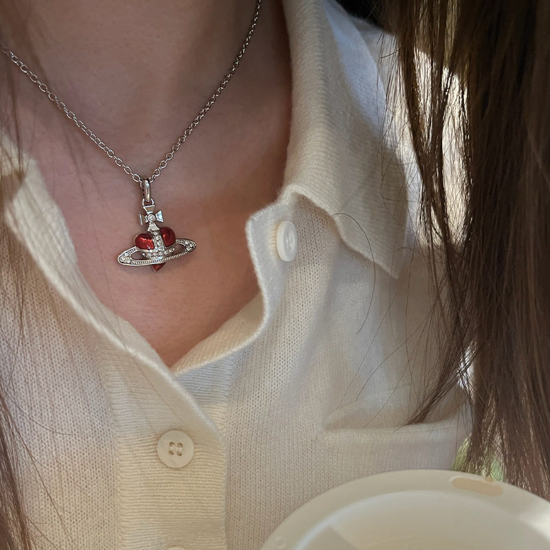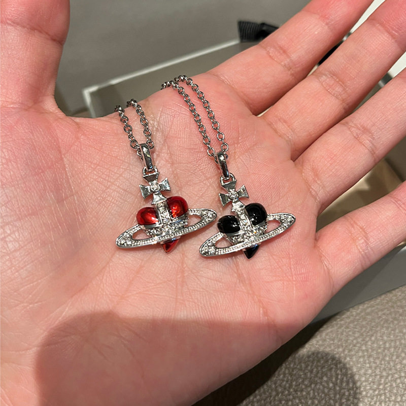 珐琅土星红色爱心项链黑色搪瓷心型项链朋克辣妹首饰