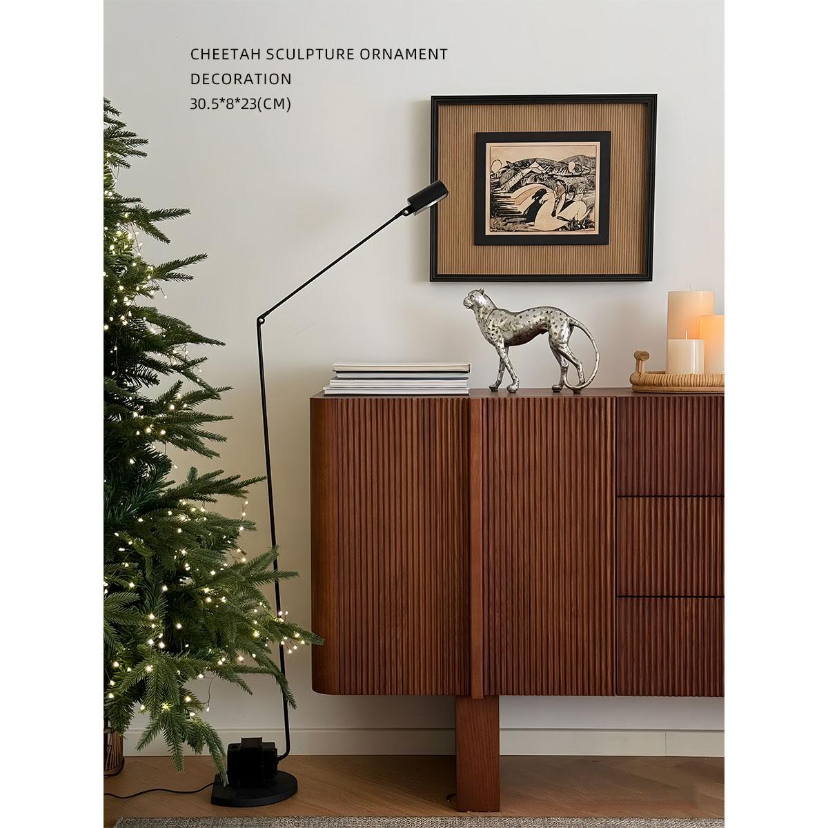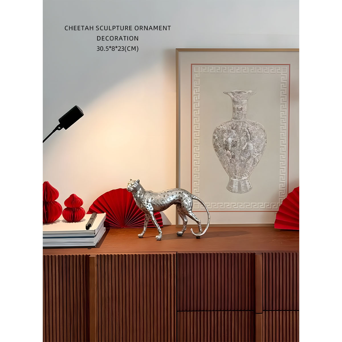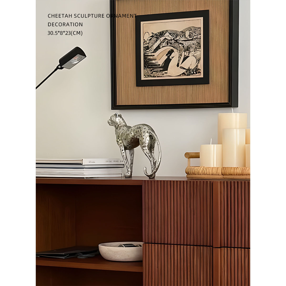 迷屿 轻奢中古银色猎豹动物桌面摆件客厅时髦艺术装置饰品摆件