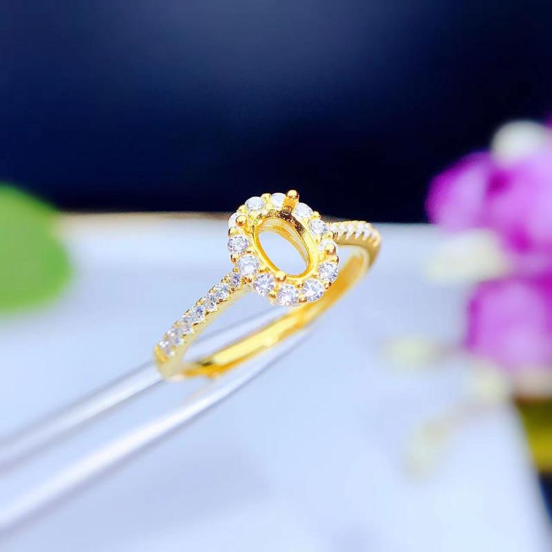 新S925纯银椭圆戒指银空托尺寸4*6mm豪华满钻可镶红蓝宝祖母绿等