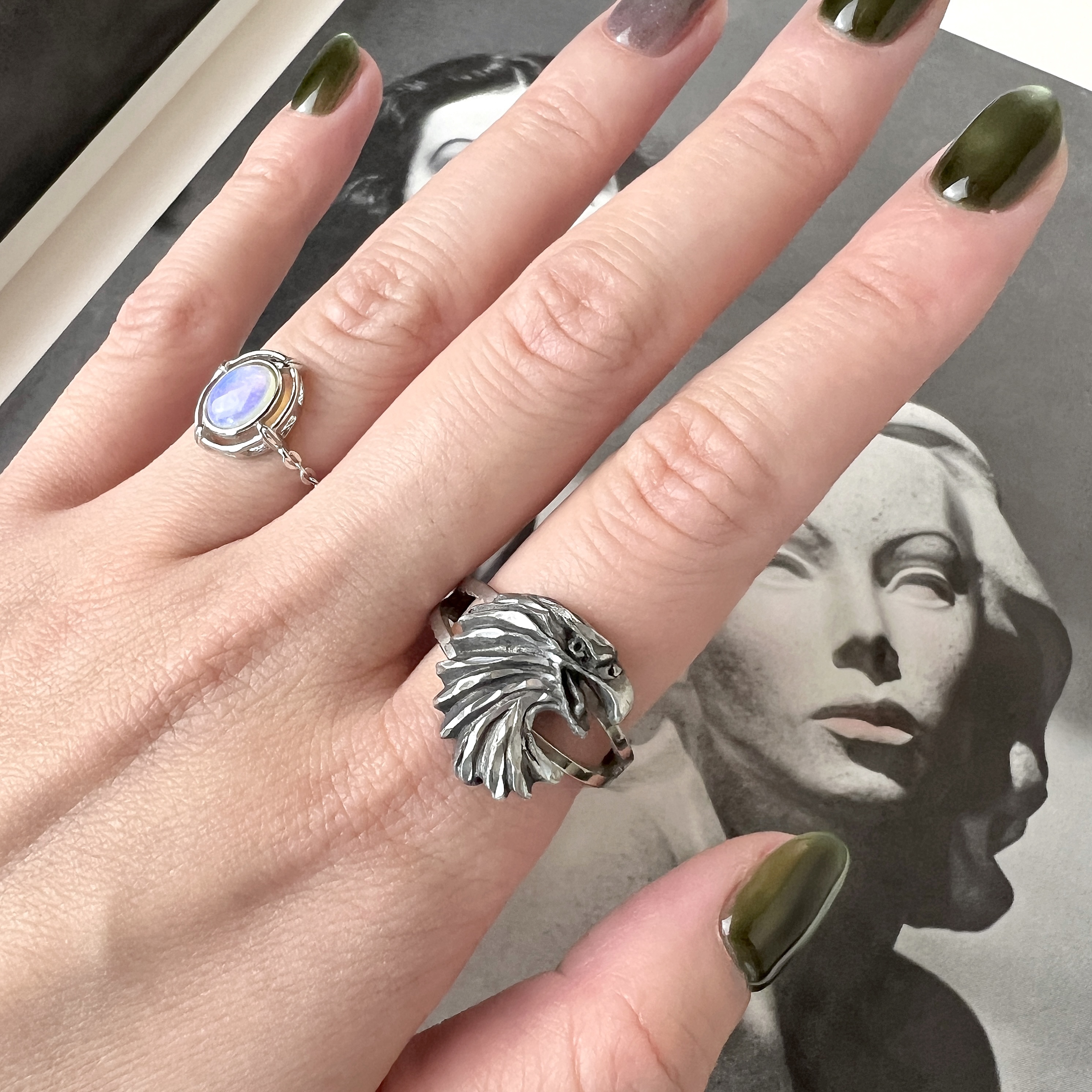 925纯银戒指印第安设计师品牌银饰老鹰戒指欧美古董首饰21号