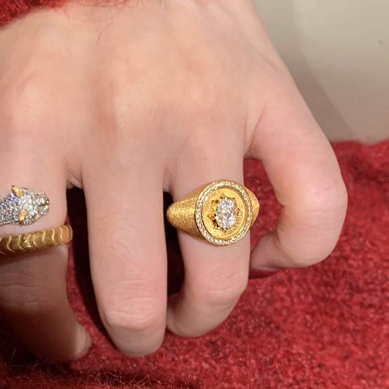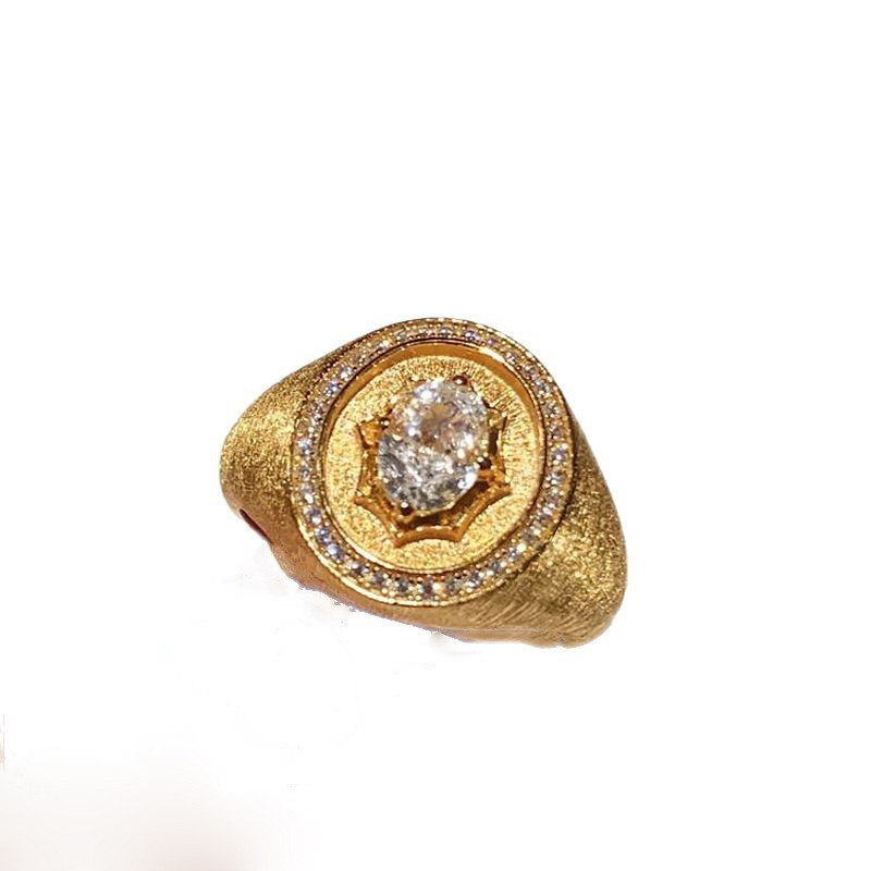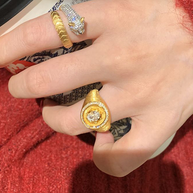 新款精致鸽子蛋钻中印章古风满拉丝指戒指