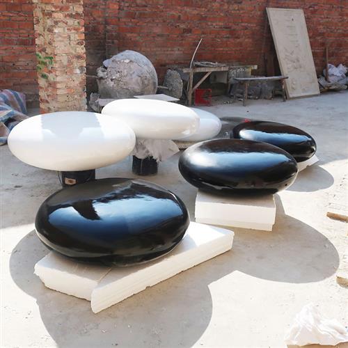 玻璃钢仿真围棋雕塑广场公园坐凳石头模型超大黑白五子棋挂壁摆件