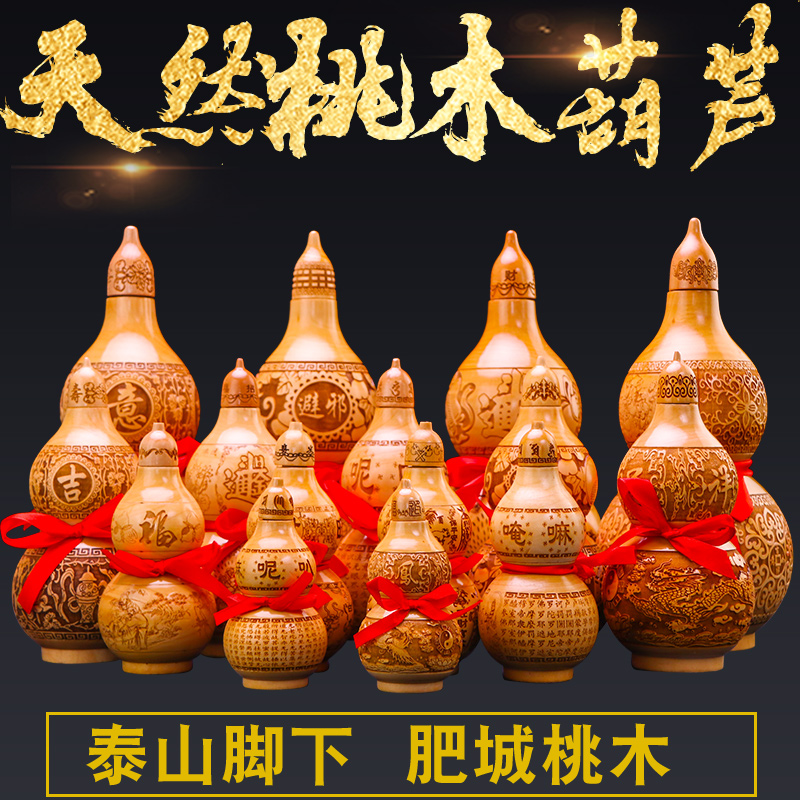 桃木葫芦摆件家居工艺品随身招财吸財大小号葫芦挂件客厅玄关装饰