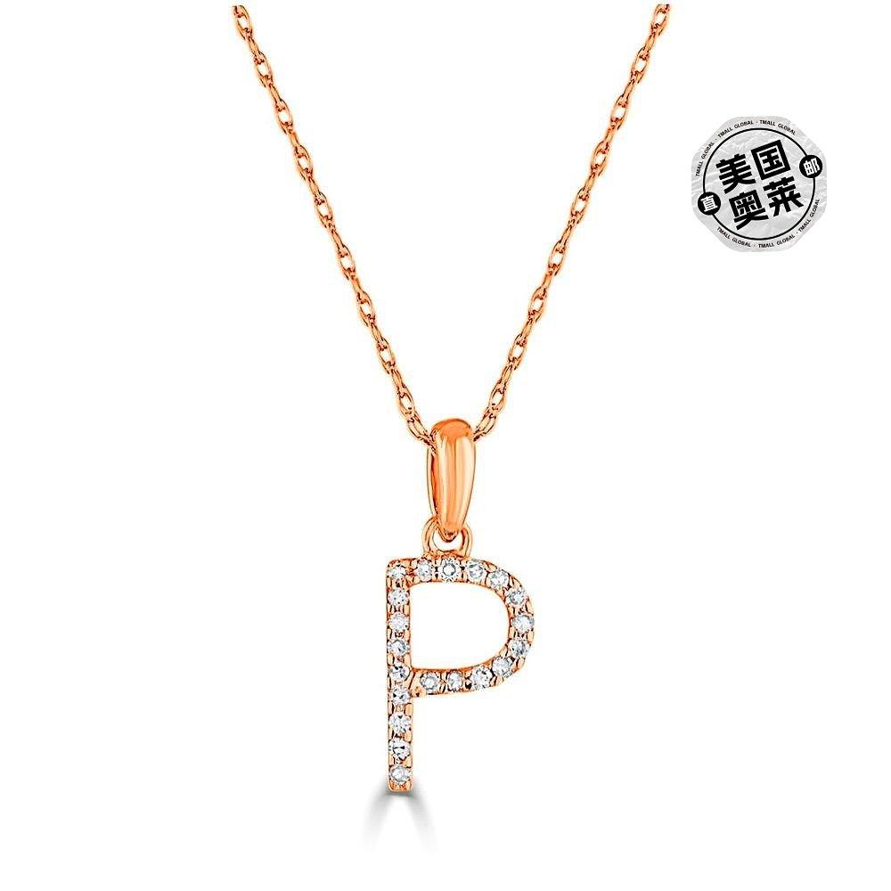 自营 sabrina14k 玫瑰金和钻石初始项链 - 玫瑰 p 美国奥莱直发