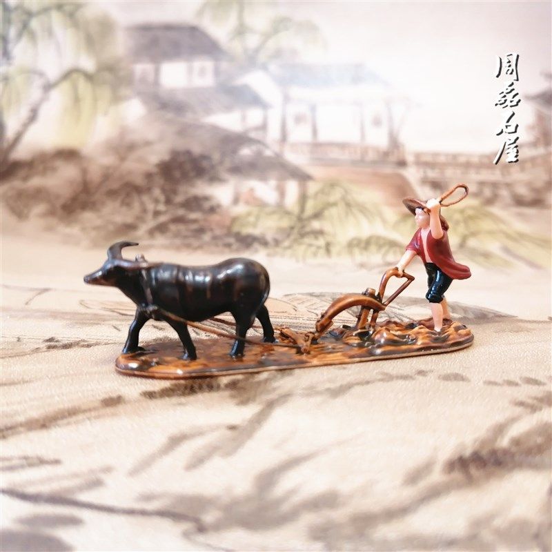 复古精品农夫犁地微景造景装饰奇石盆景假山枯山水鱼缸树脂小摆件
