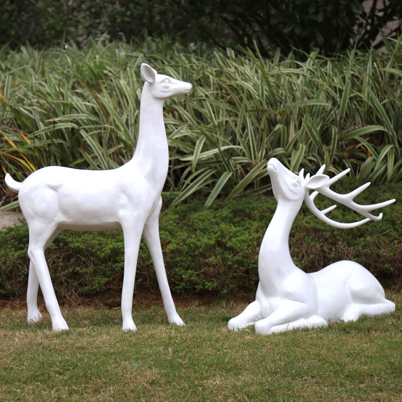 抽象鹿室内商场玻璃钢树脂梅花鹿雕塑园林景观装饰婚庆白色鹿摆件