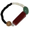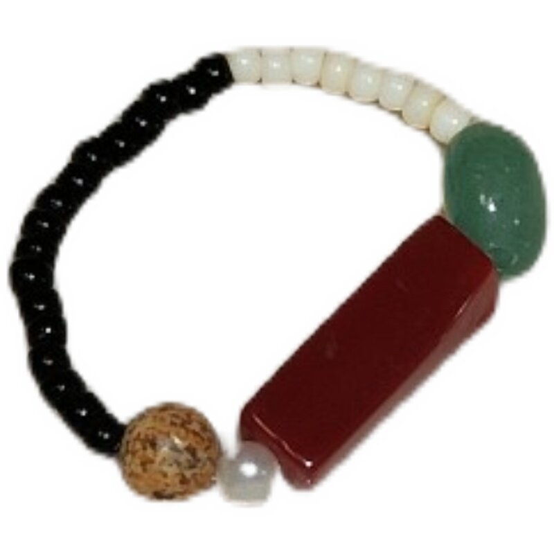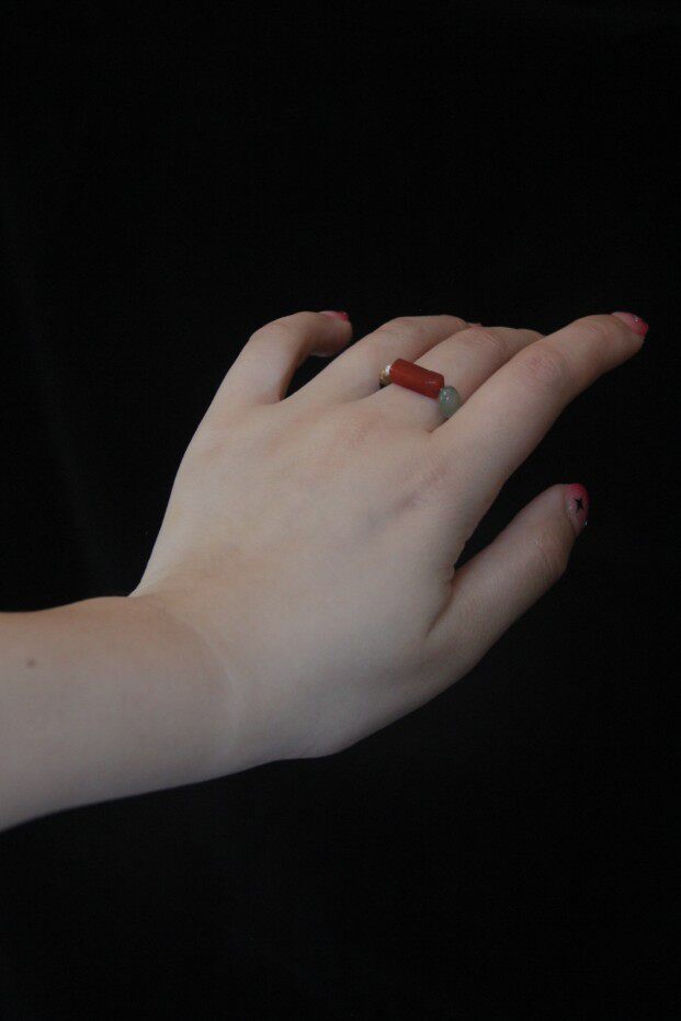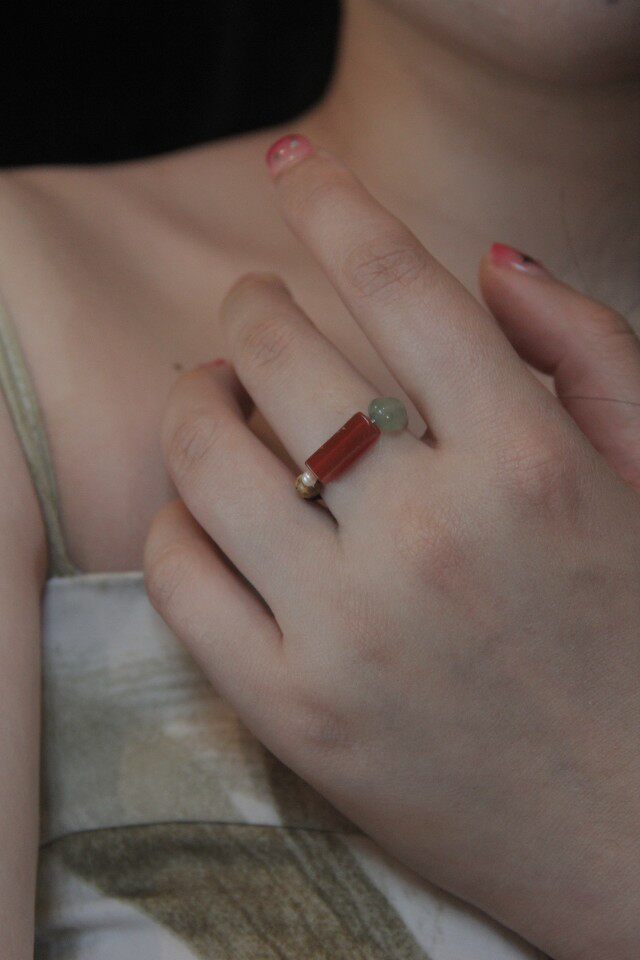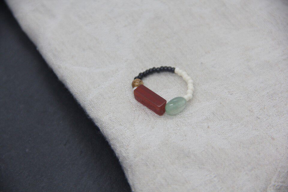 原创设计中国古风复古红绿配色小众珍珠琉璃串珠天然玉石弹力戒指
