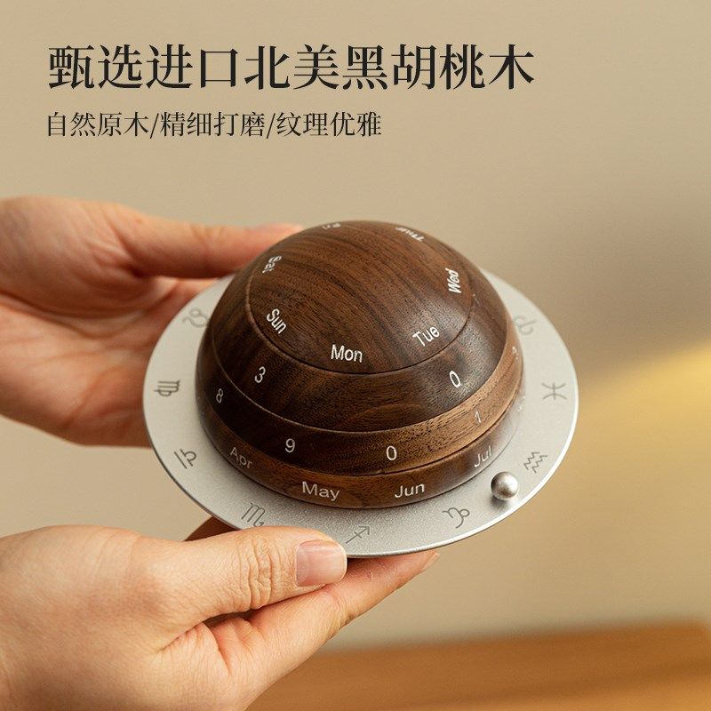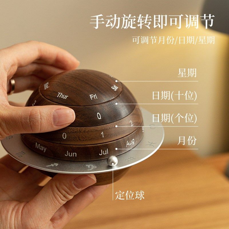 地球日历创意摆件2025年新款机械万年历实木高级复古台历开学礼物