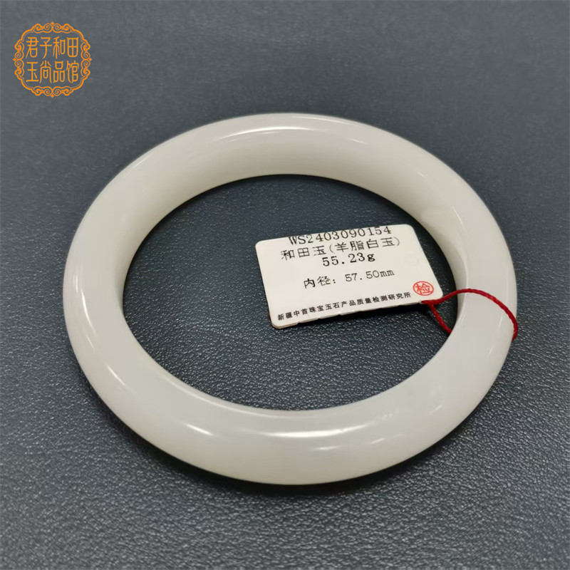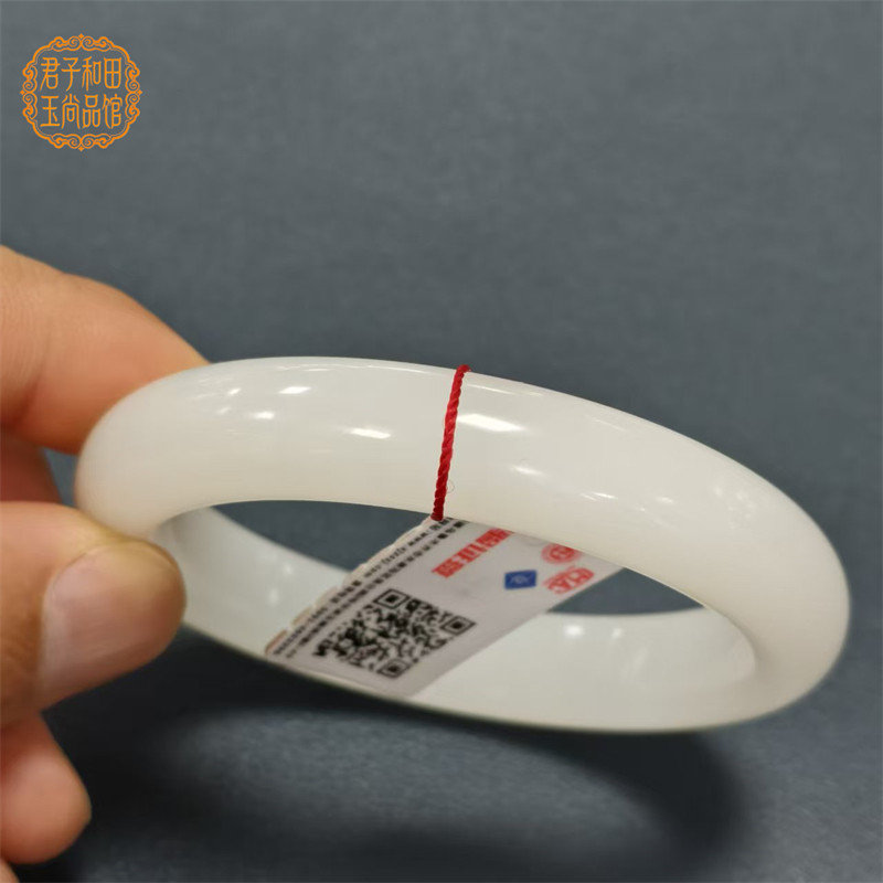 57.5mm内径新疆于田羊脂白玉手镯轻薄款一级白和田玉镯