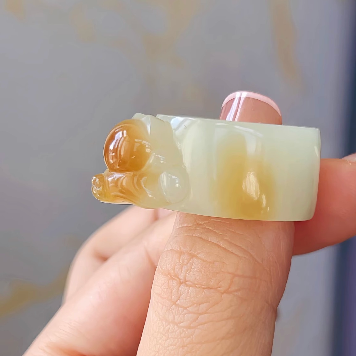【暖猫戒指】和田玉可爱立体猫戒指DIY挂饰配件男女同款直播专拍
