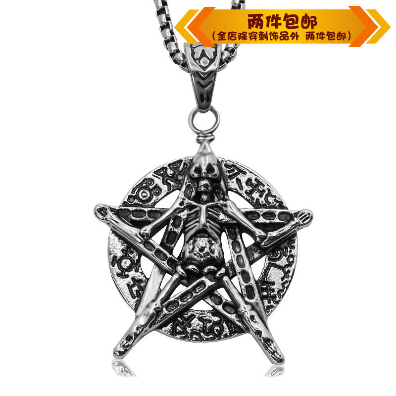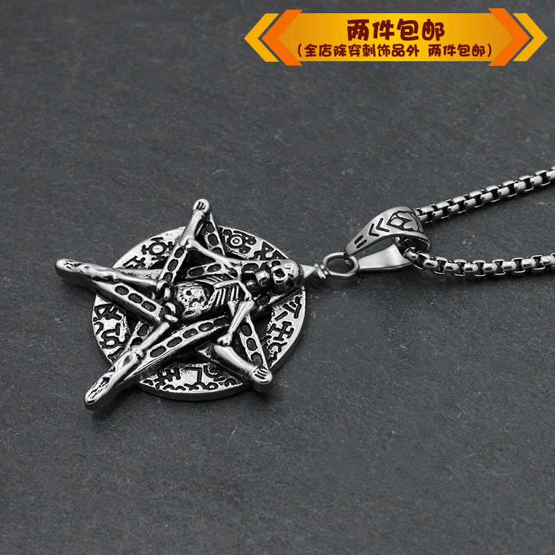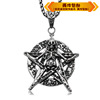 时尚钛钢项链创意五角星骷髅头圆形吊坠黑色霸气鬼头男款钛钢项链