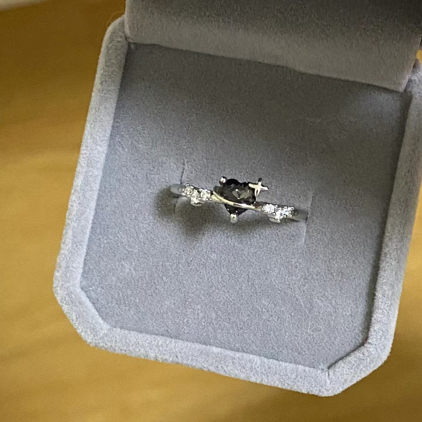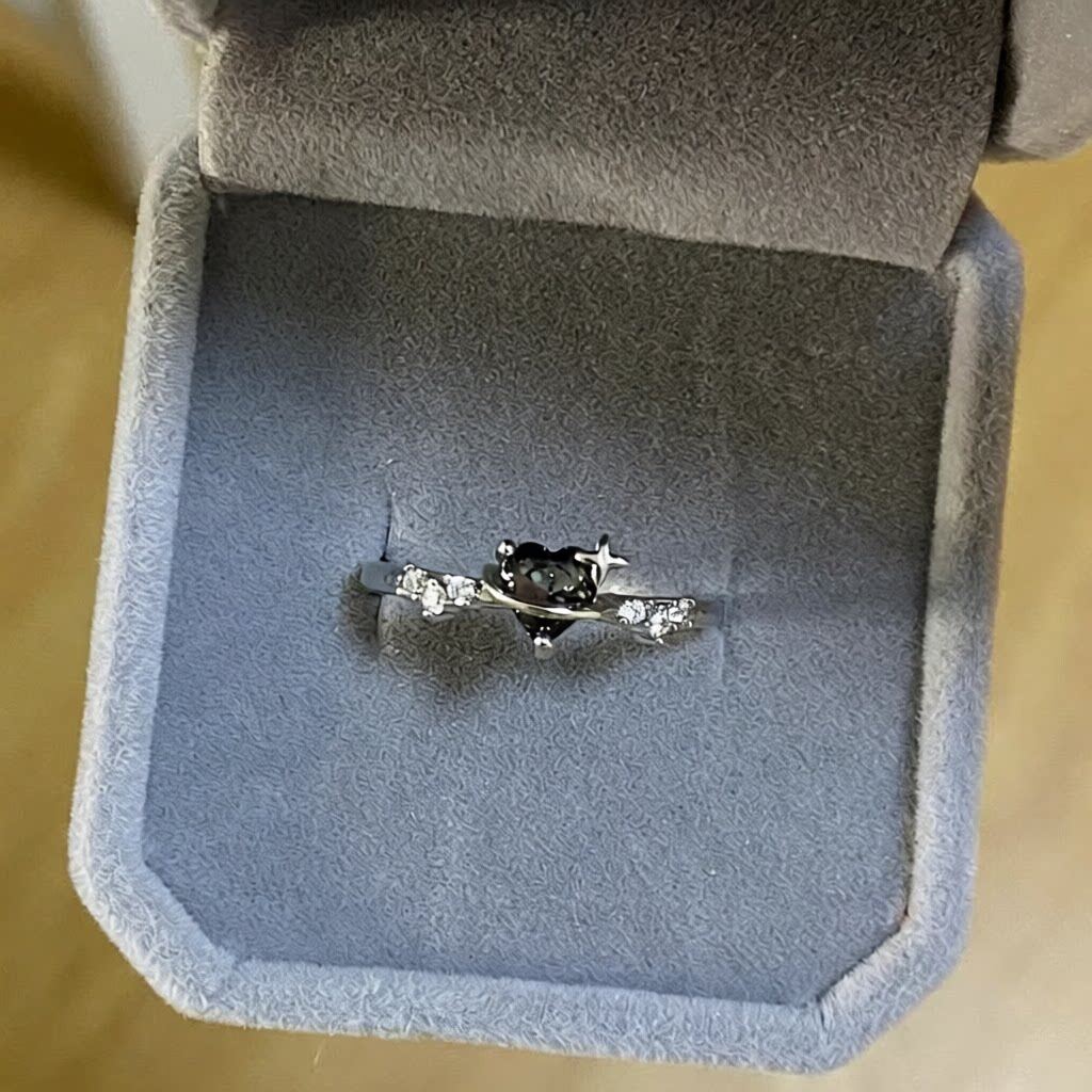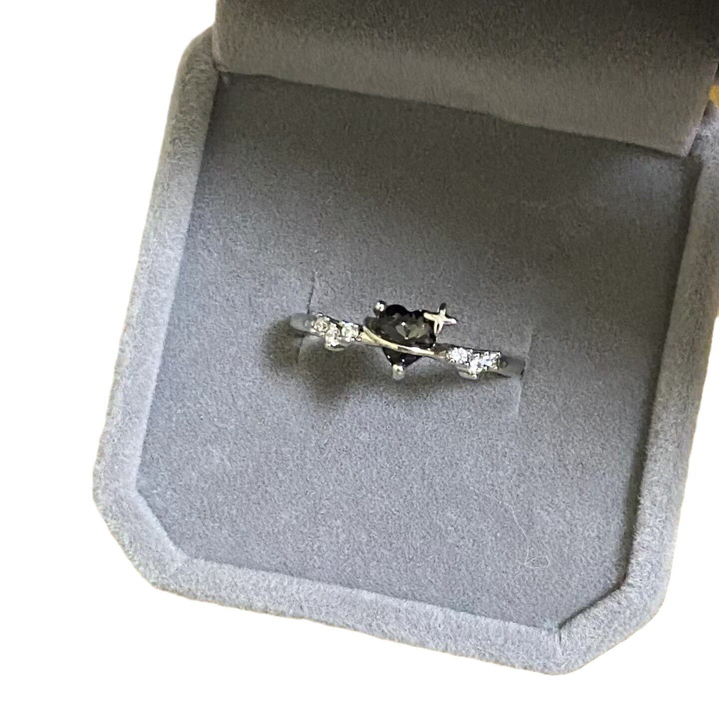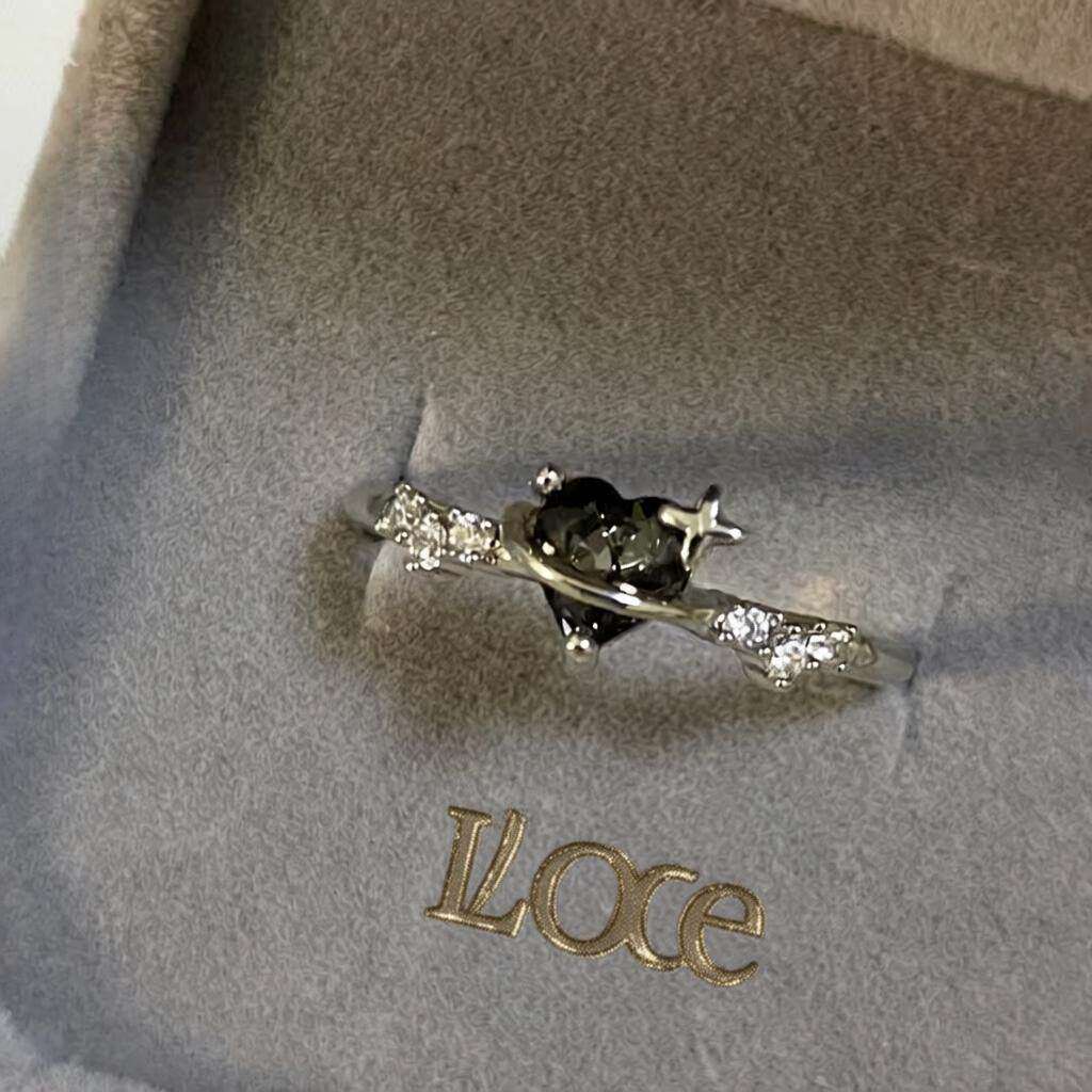 新款爆款黑色爱心皓石戒指女款高级感尾戒冷淡风食指戒甜美