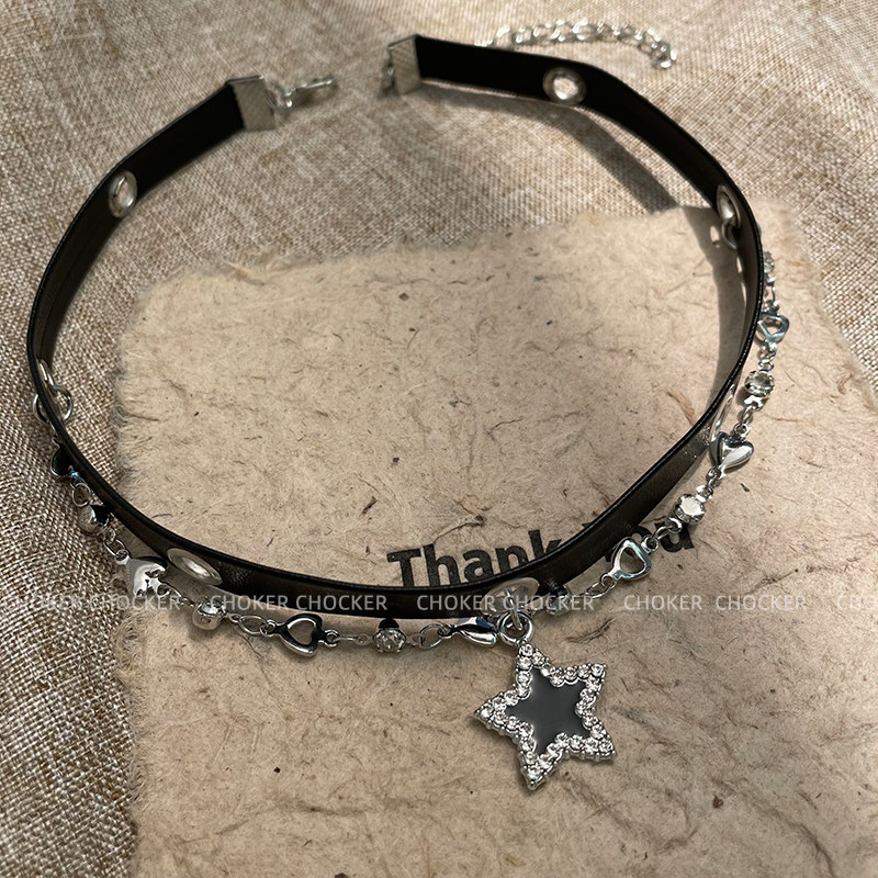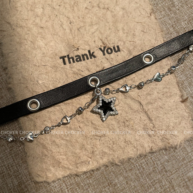 黑色皮革星星脖颈链项圈女choker甜酷辣妹高级感锁骨链小众配饰品