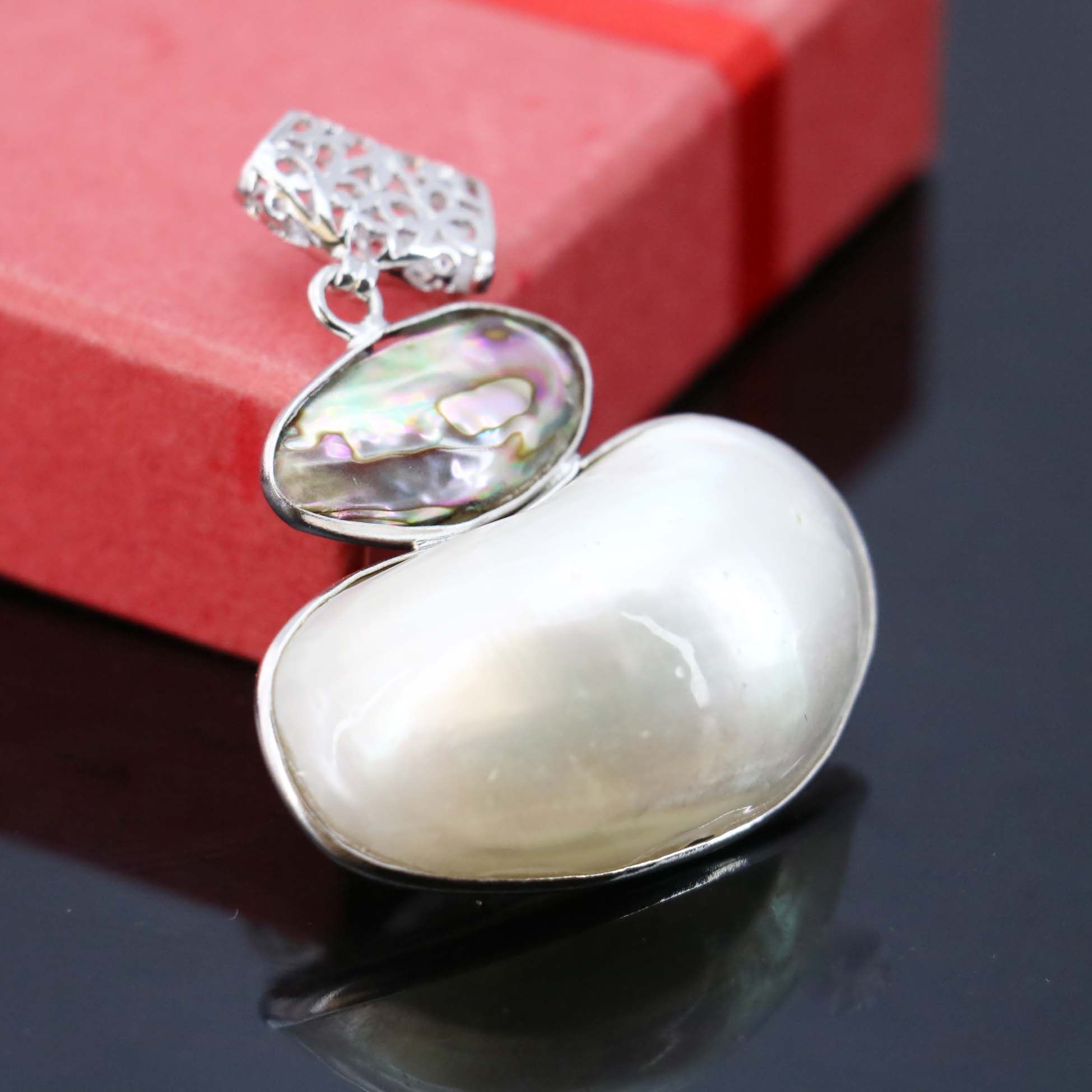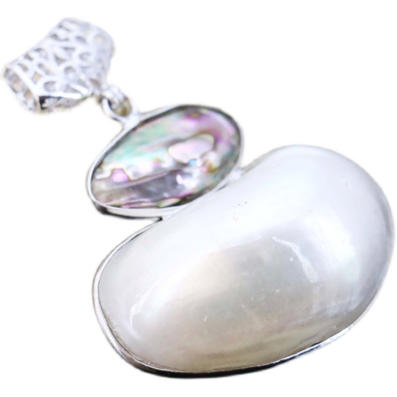拼接横款天然鲍鱼贝项链吊坠 3D幻彩DIY项链首饰白母贝挂件送妈妈
