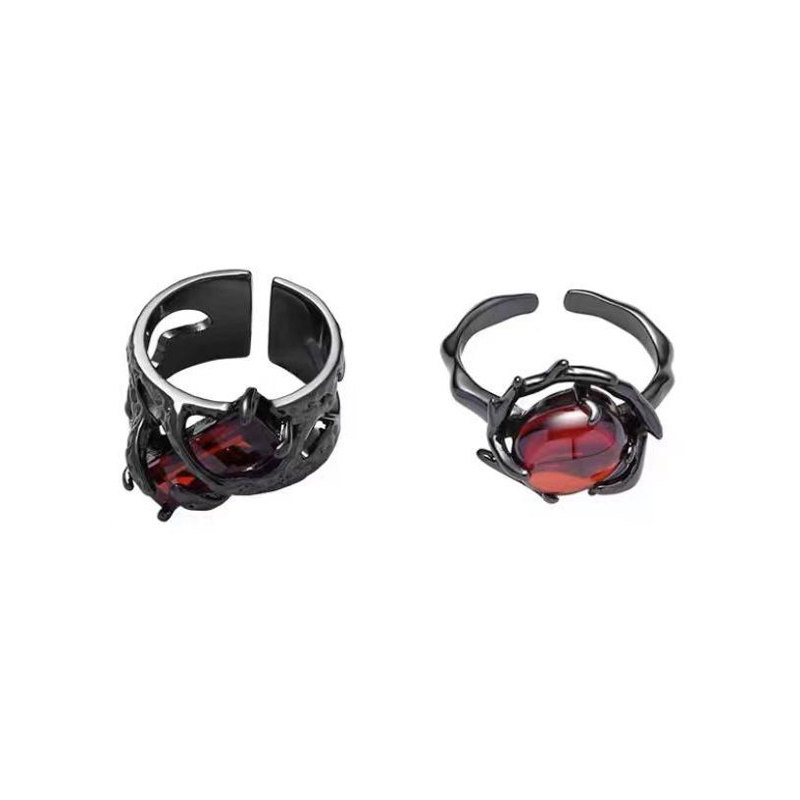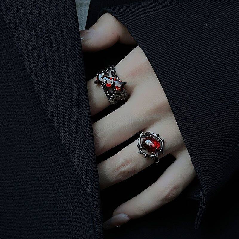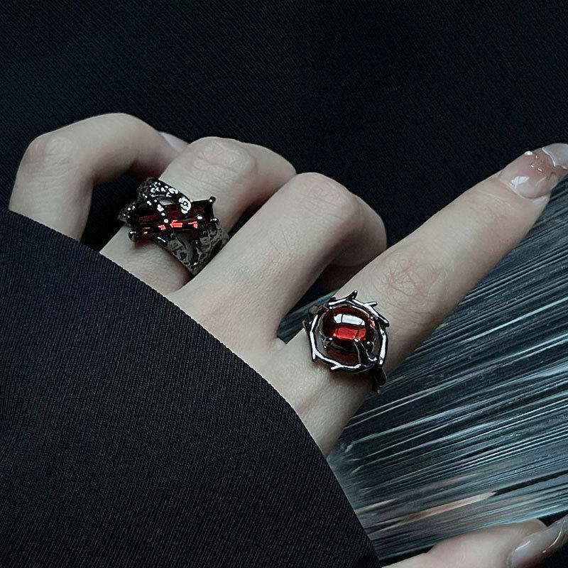 镂空复古石榴红几何设计戒指女潮个性暗黑欧美冷淡风气质开口指环