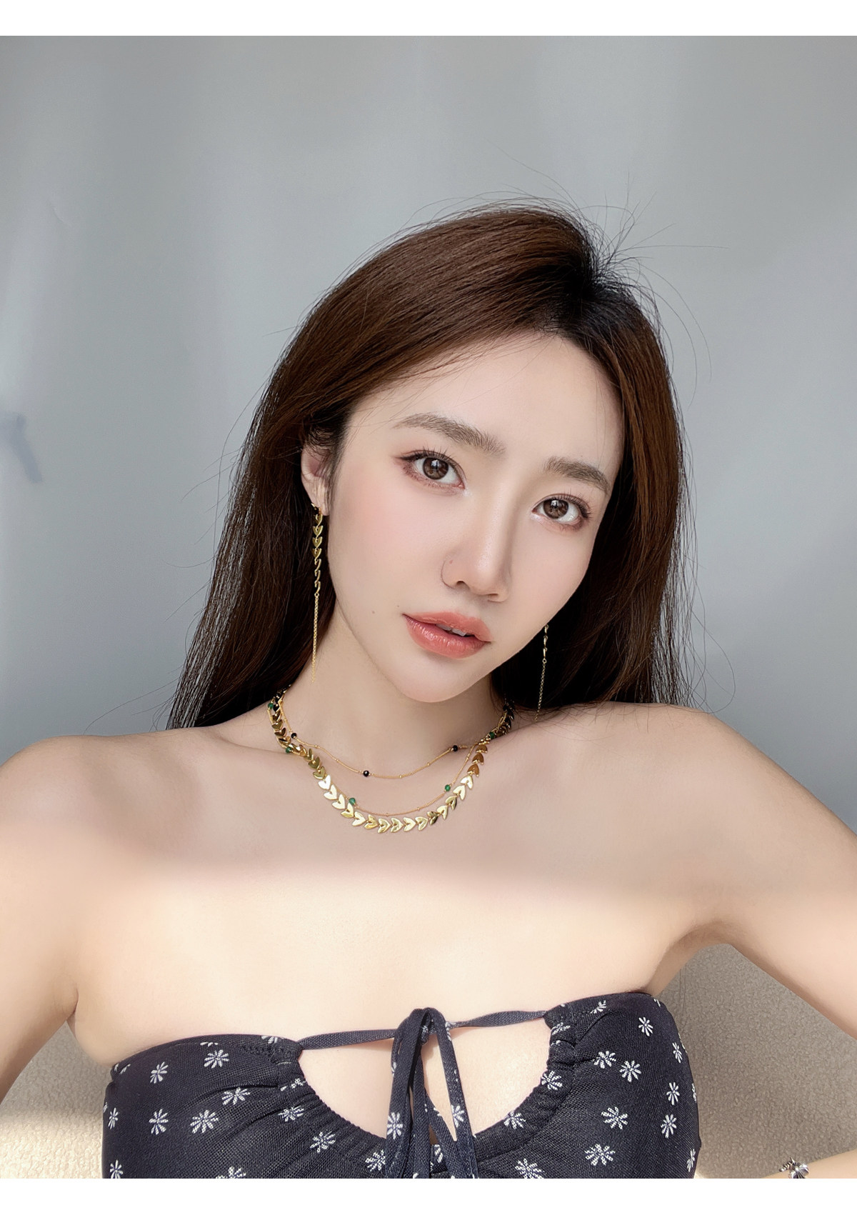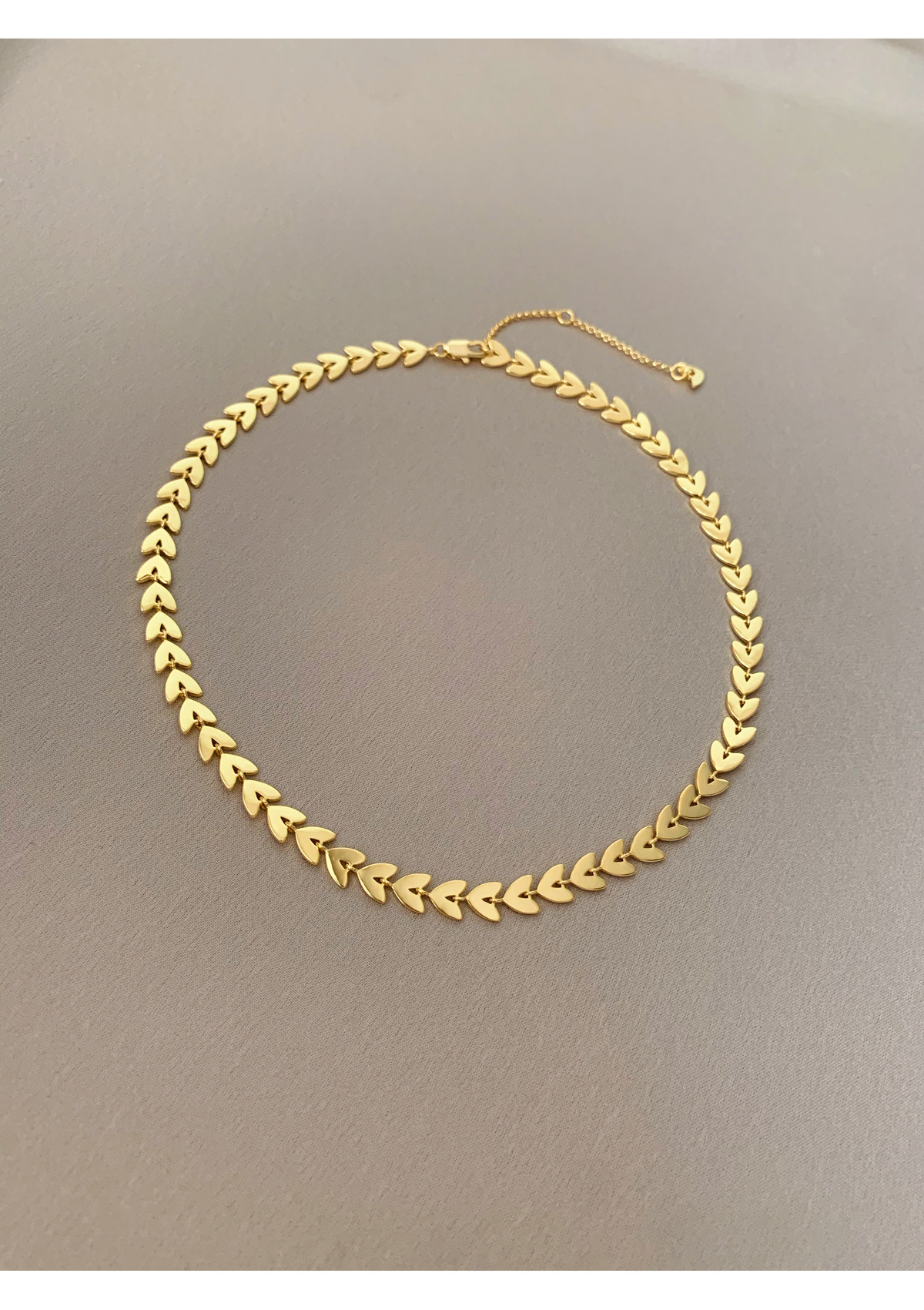 编织新款高端时髦百搭波光粼粼麦穗小爱心形INS风金色锁骨项链女