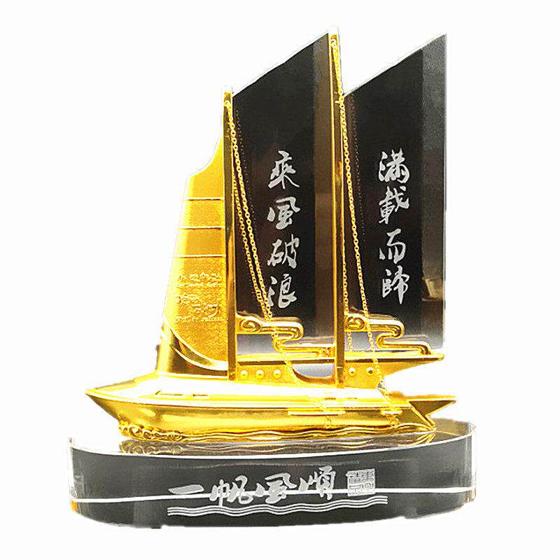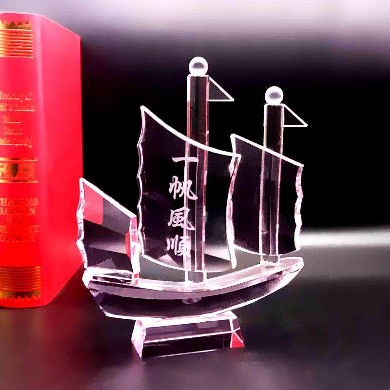 一帆风顺水晶帆船桌面摆件开业商务庆典客厅办公会议退休礼品刻字