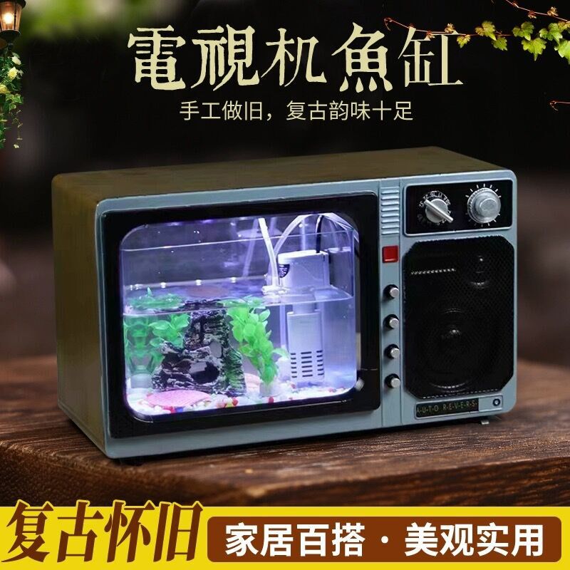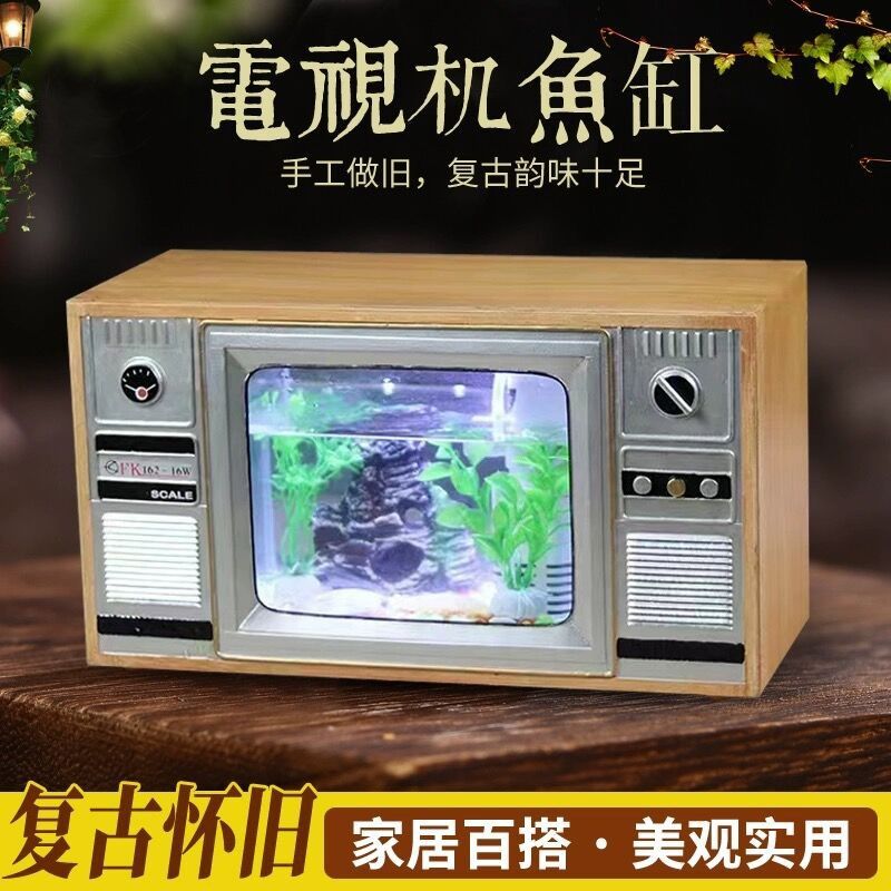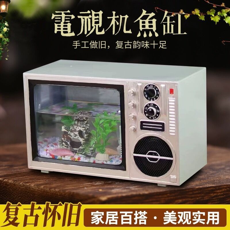 复古老式电视机鱼缸摆件酒吧餐厅饭店客厅家居创意怀旧装饰品摆设
