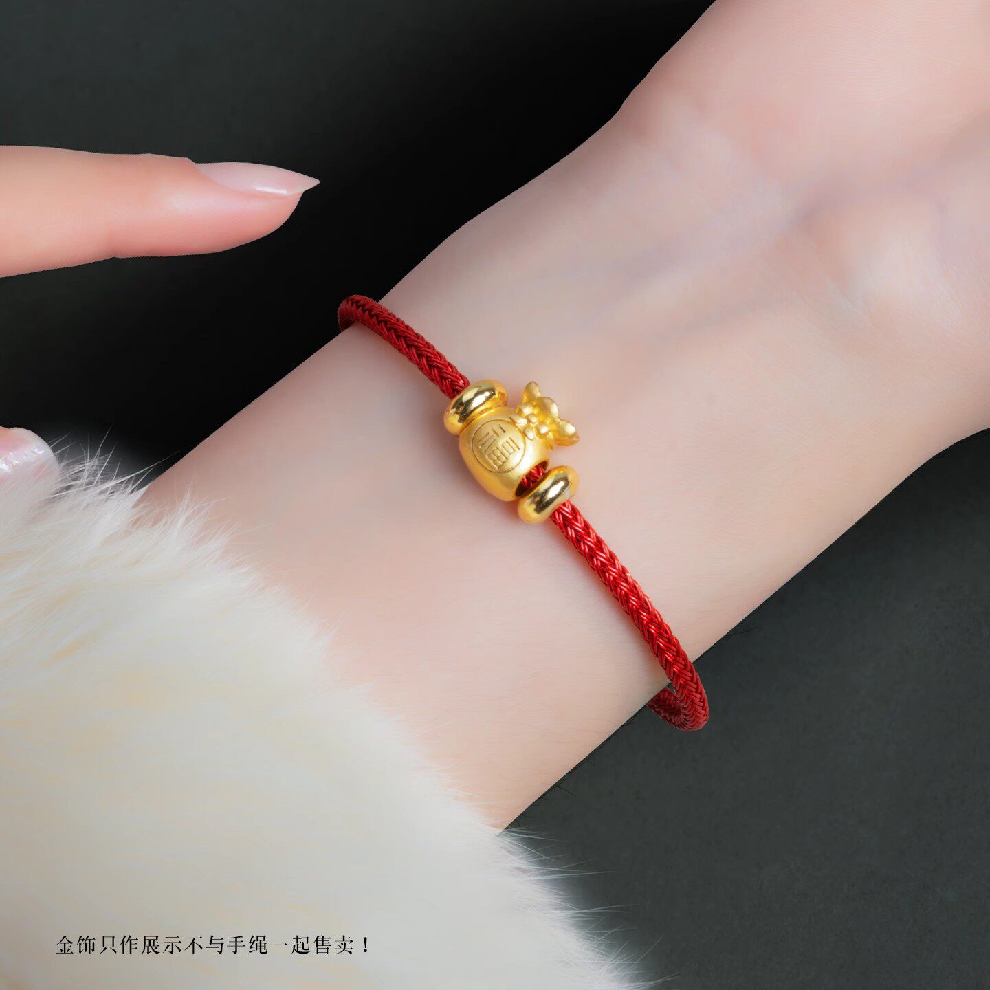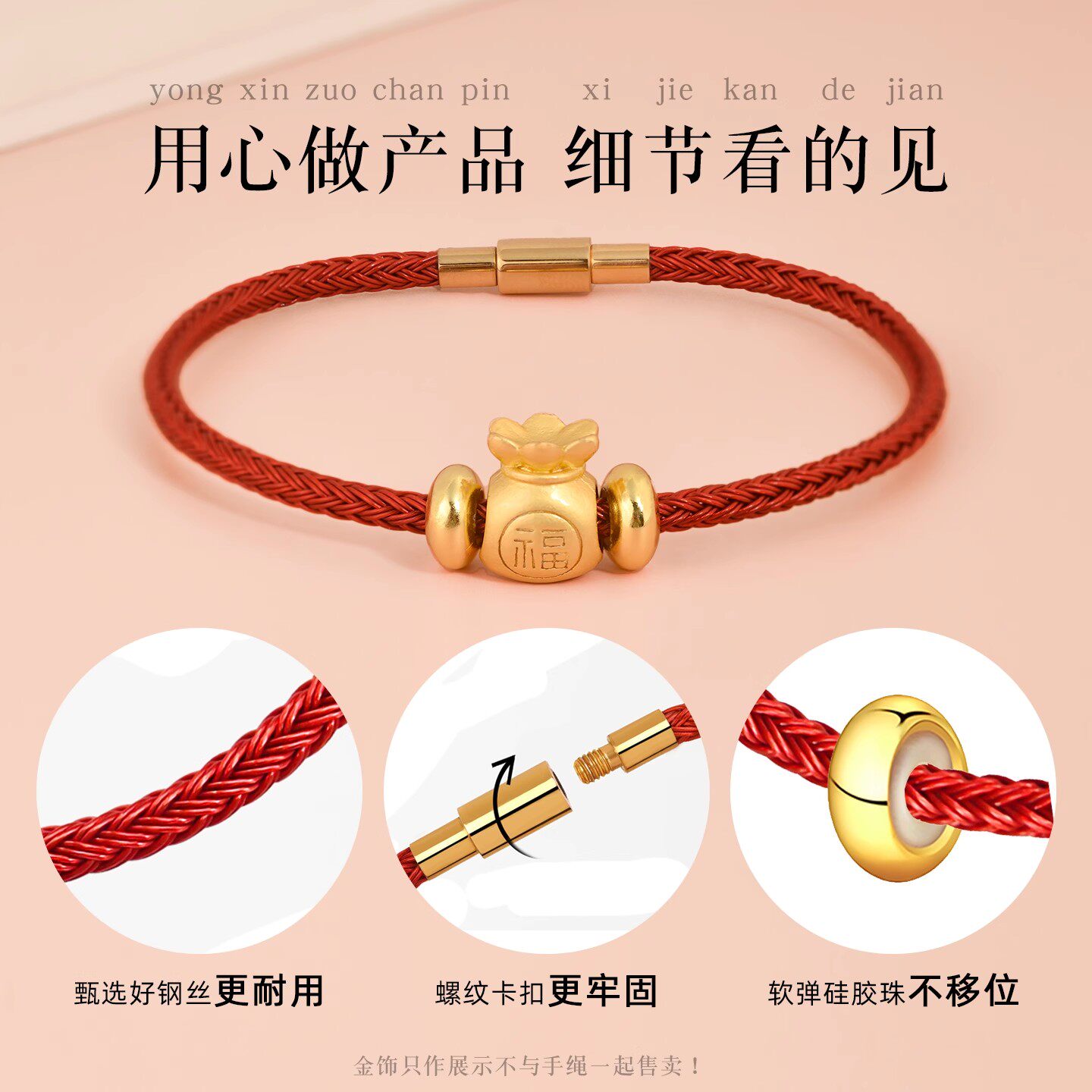 可穿黄金的本命年钢丝编织手绳可自由diy半成品防水男女马年红绳