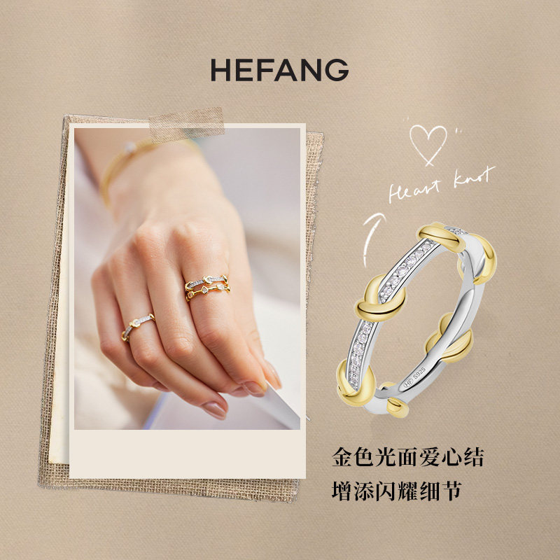 [HEFANG何方奥莱]何方珠宝爱心结戒指女轻奢高级感戒圈圣诞礼物DX