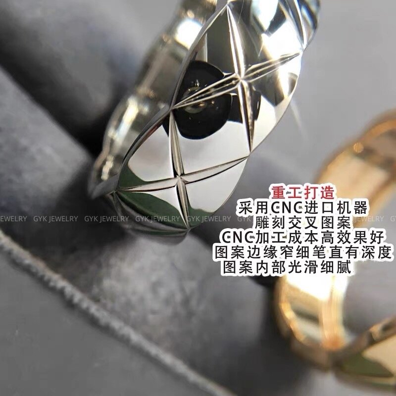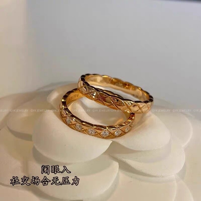 菱格纹戒指轻奢高级感叠戴窄宽情侣对戒玫瑰金小香cococruch女戒