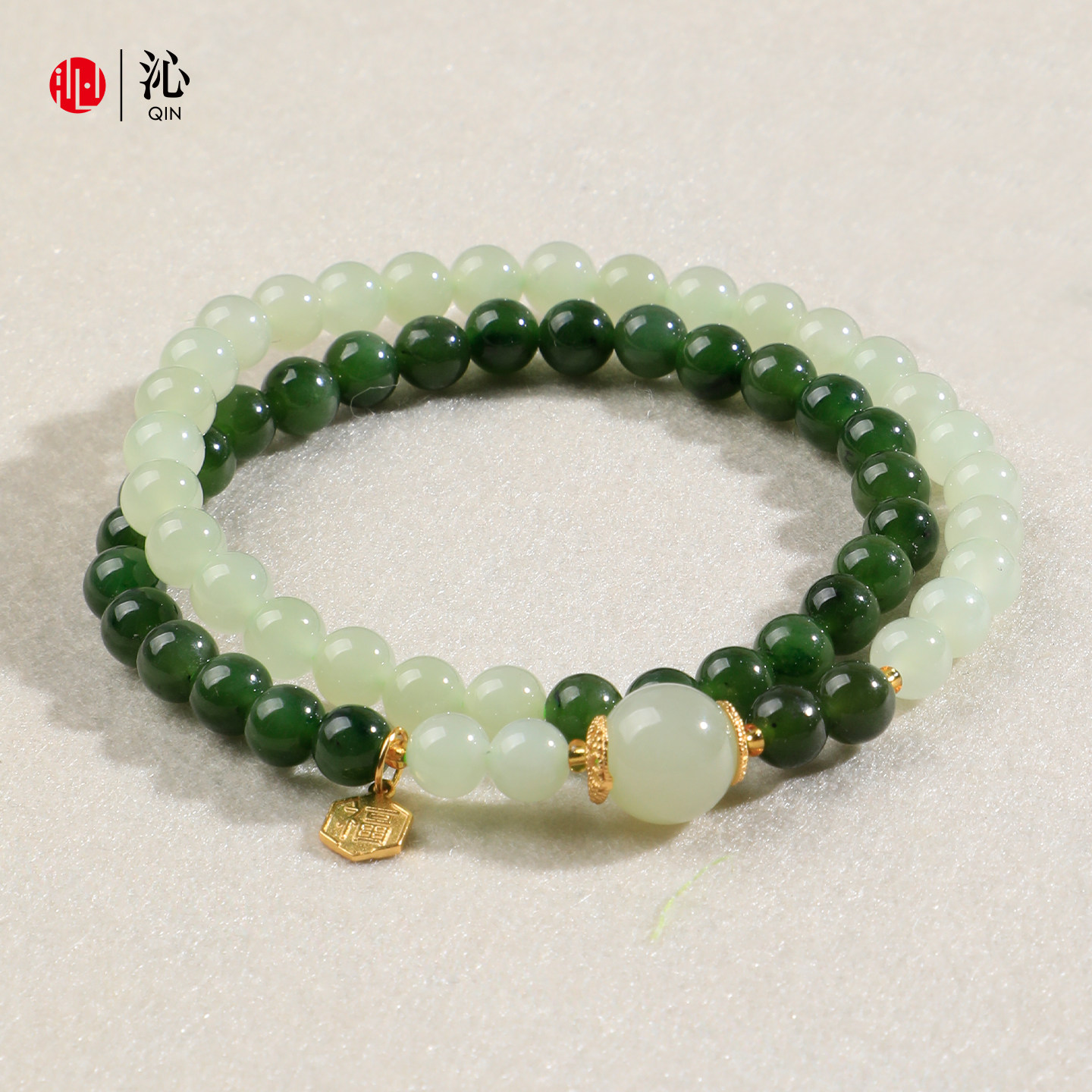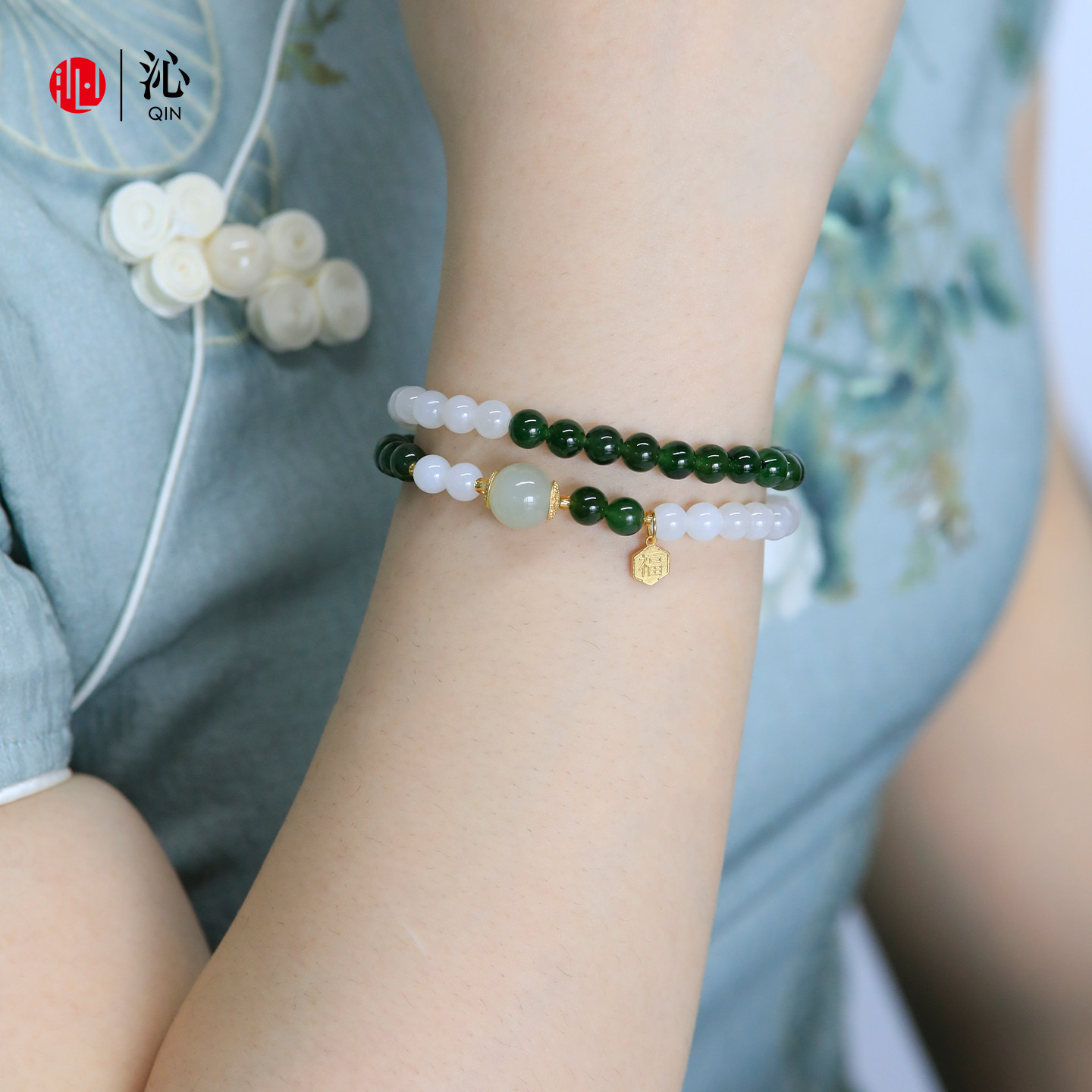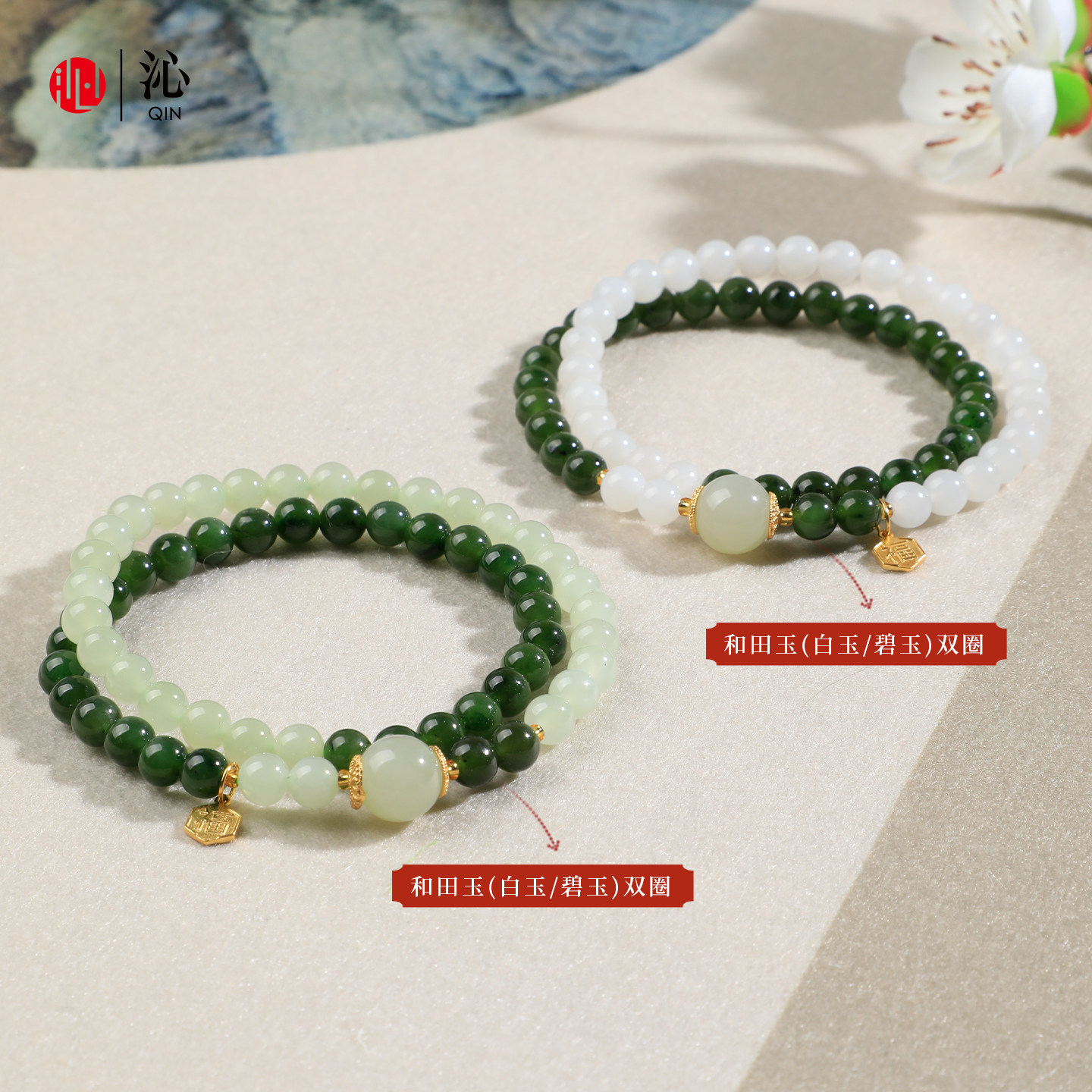 天然和田玉手串女款碧玉晴水双圈手链真品送女友妈妈2026新年礼物