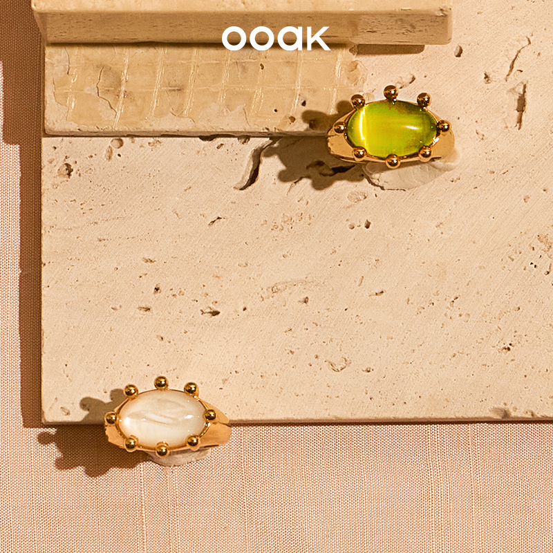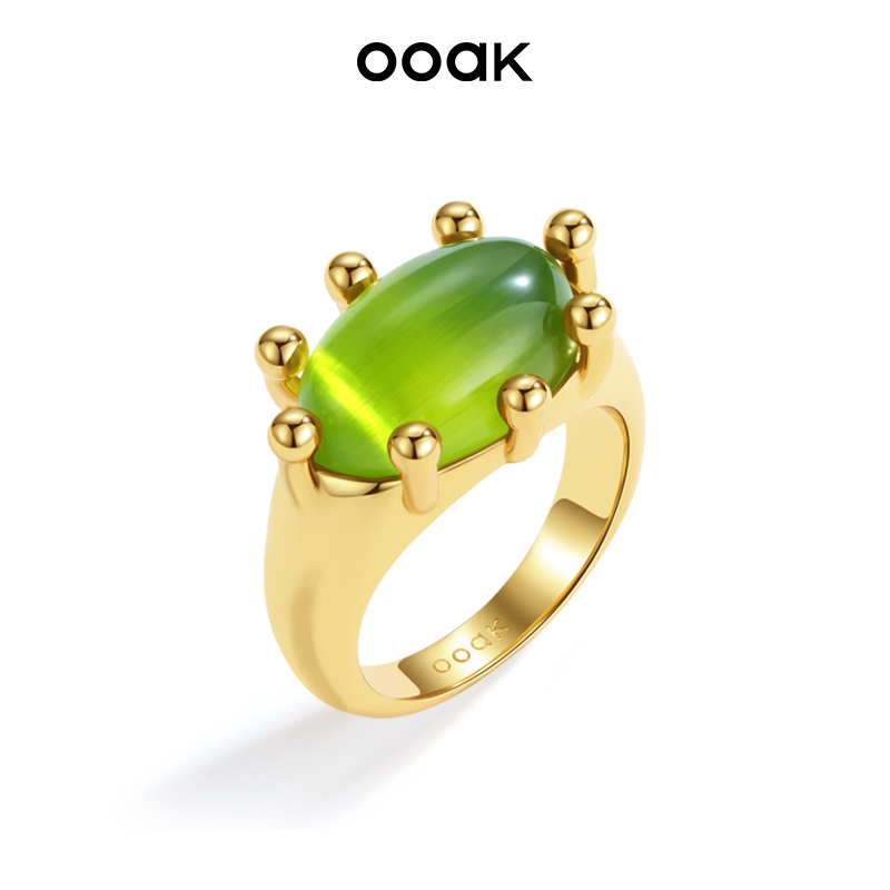 OOAK摩登上海系列绿猫眼吊灯戒指白贝母镶嵌女原创