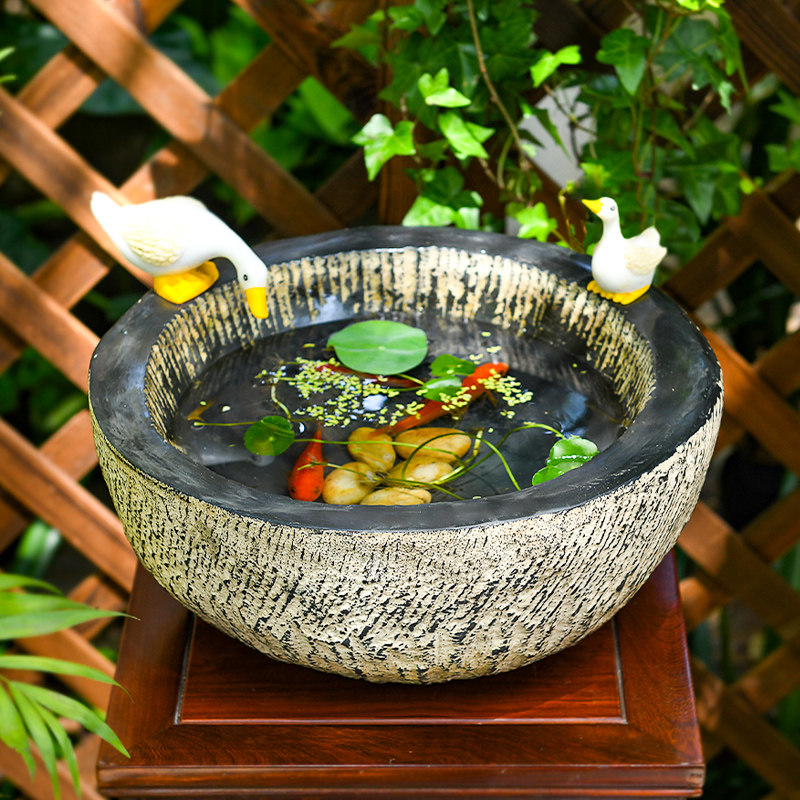庭院水井装饰摆件花园小鱼池水培盆景水景中式天台仿古造景鱼缸