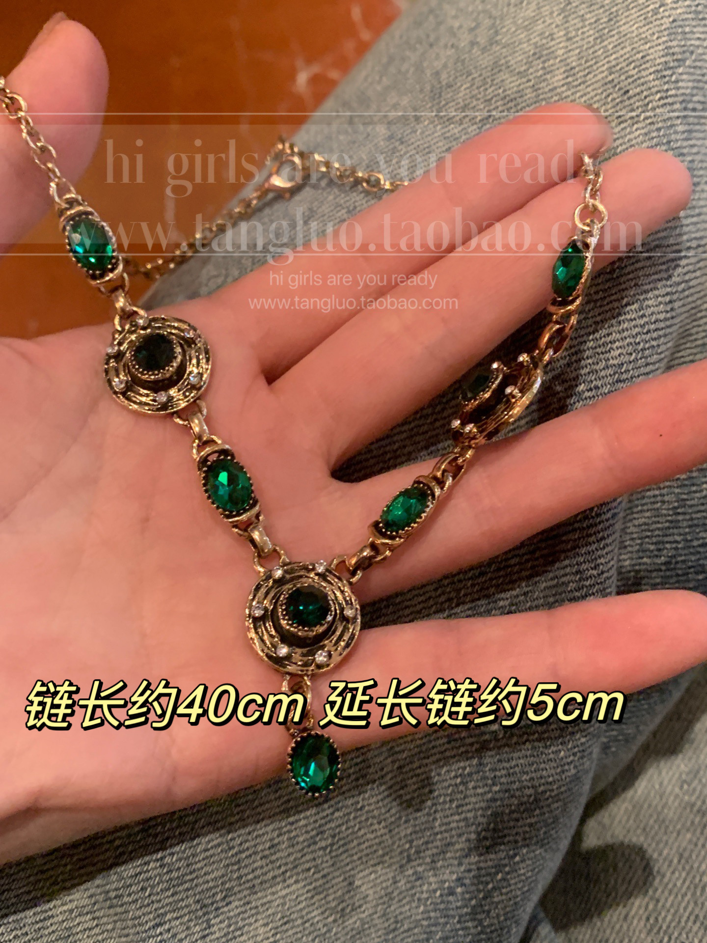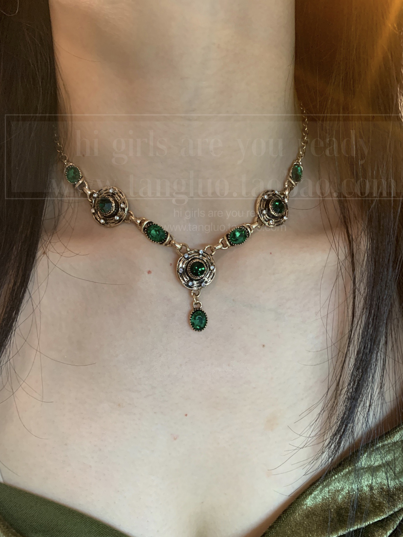 棠洛 绿色vintage锁骨链女波西米亚风项链小众独特嬉皮废土配饰潮