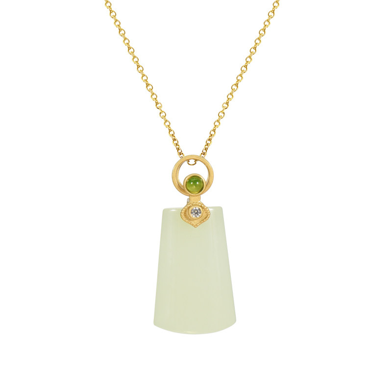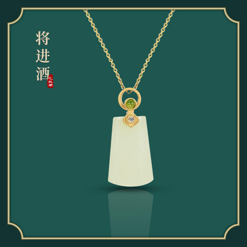 将进酒天然和田玉项链吊坠古法银宝石锁骨链复古中国风旗袍首饰