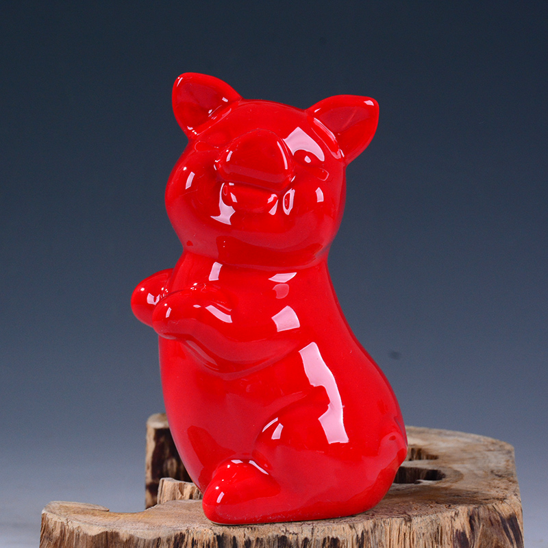 德化瓷土传统工艺高温烧制瓷质细腻釉面光滑陶瓷招财风水红色小猪