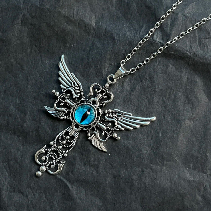 哥特恶魔亚文化十字架颈链项链天使毛衣翅膀魔眼长款情侣学生项链
