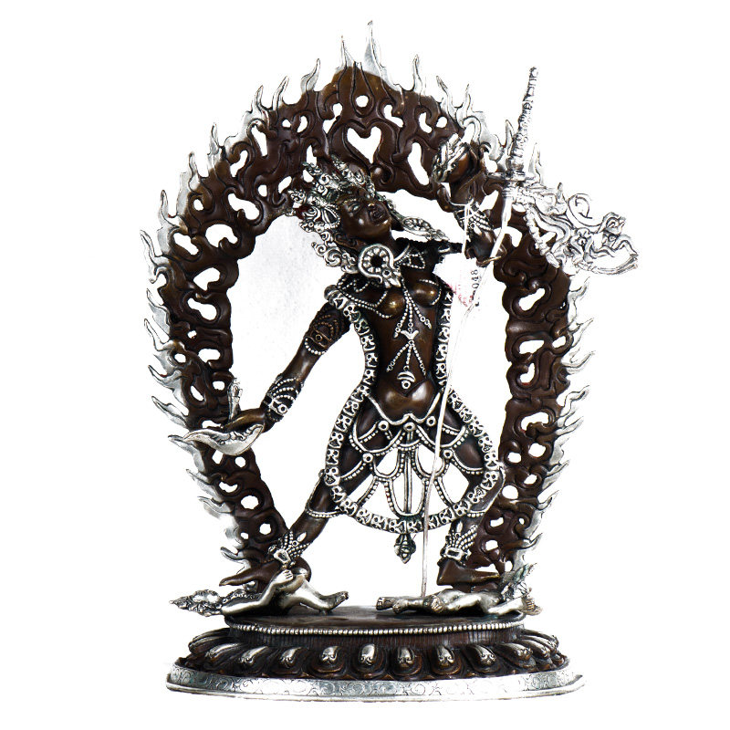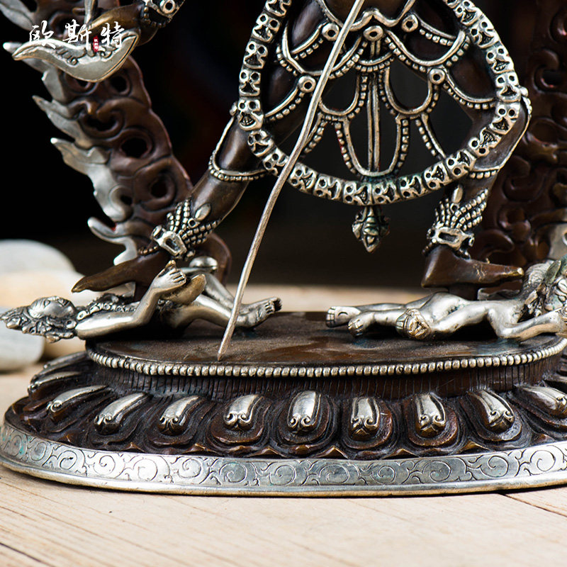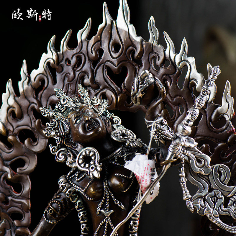 欧斯特那洛空行母铜像玄关像尼泊尔10寸紫铜镀银家用客厅中式摆件