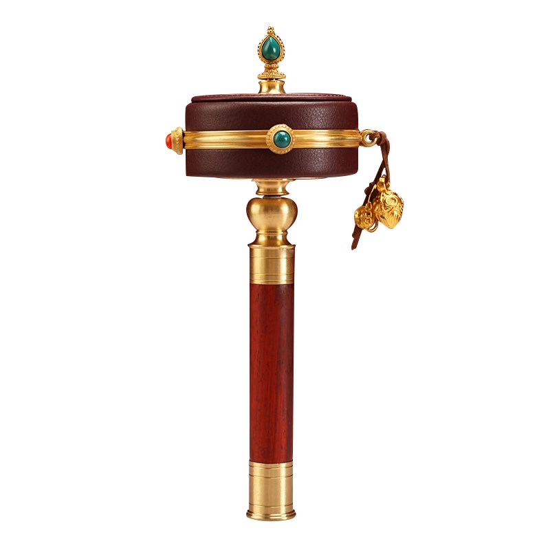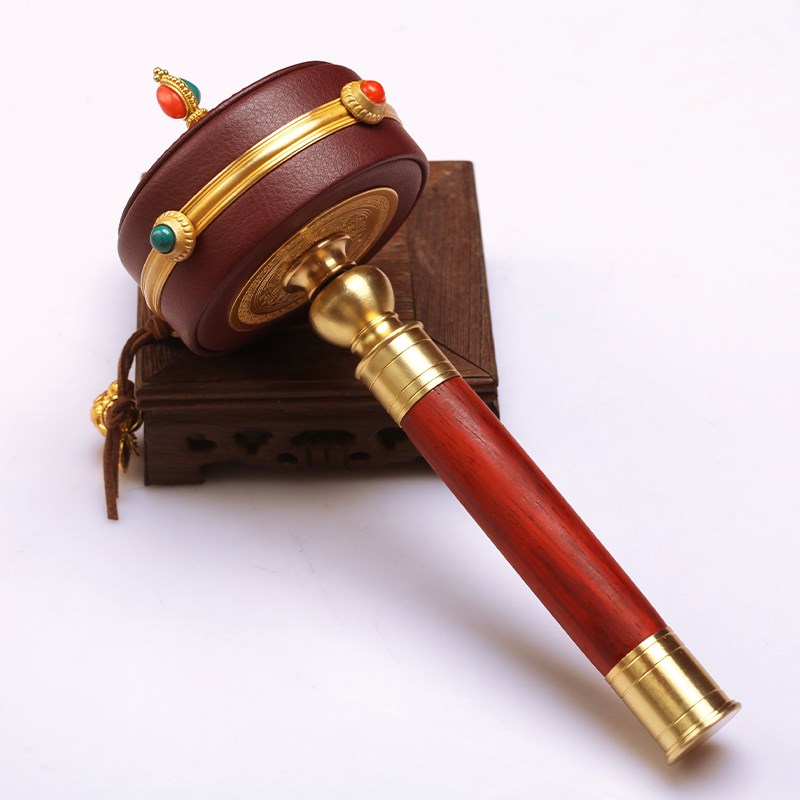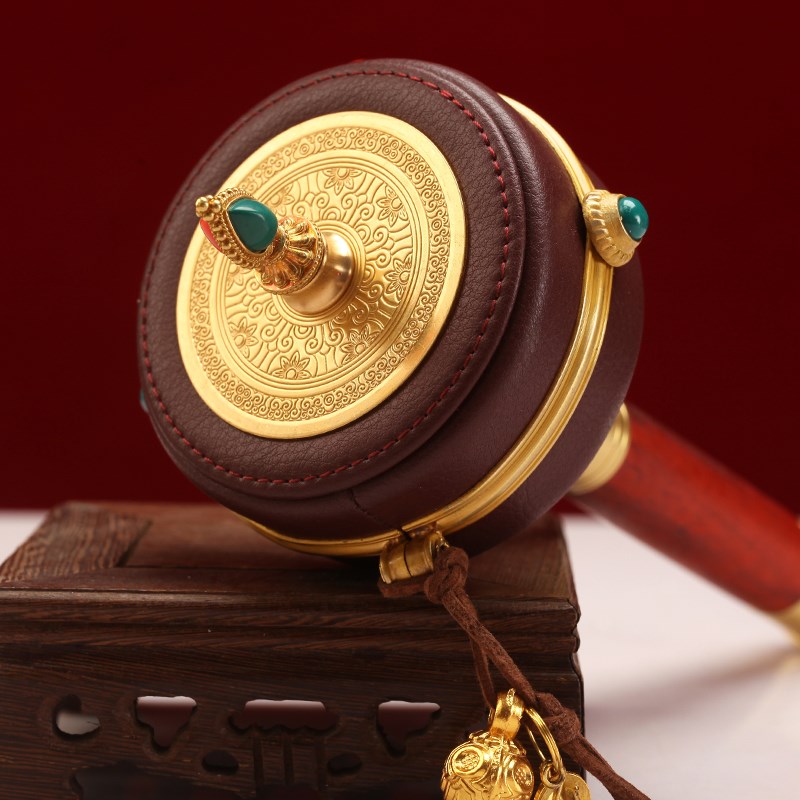 黄铜皮革圣大g金银铜色手摇转金轮小号转经简底座铜红色家用实木