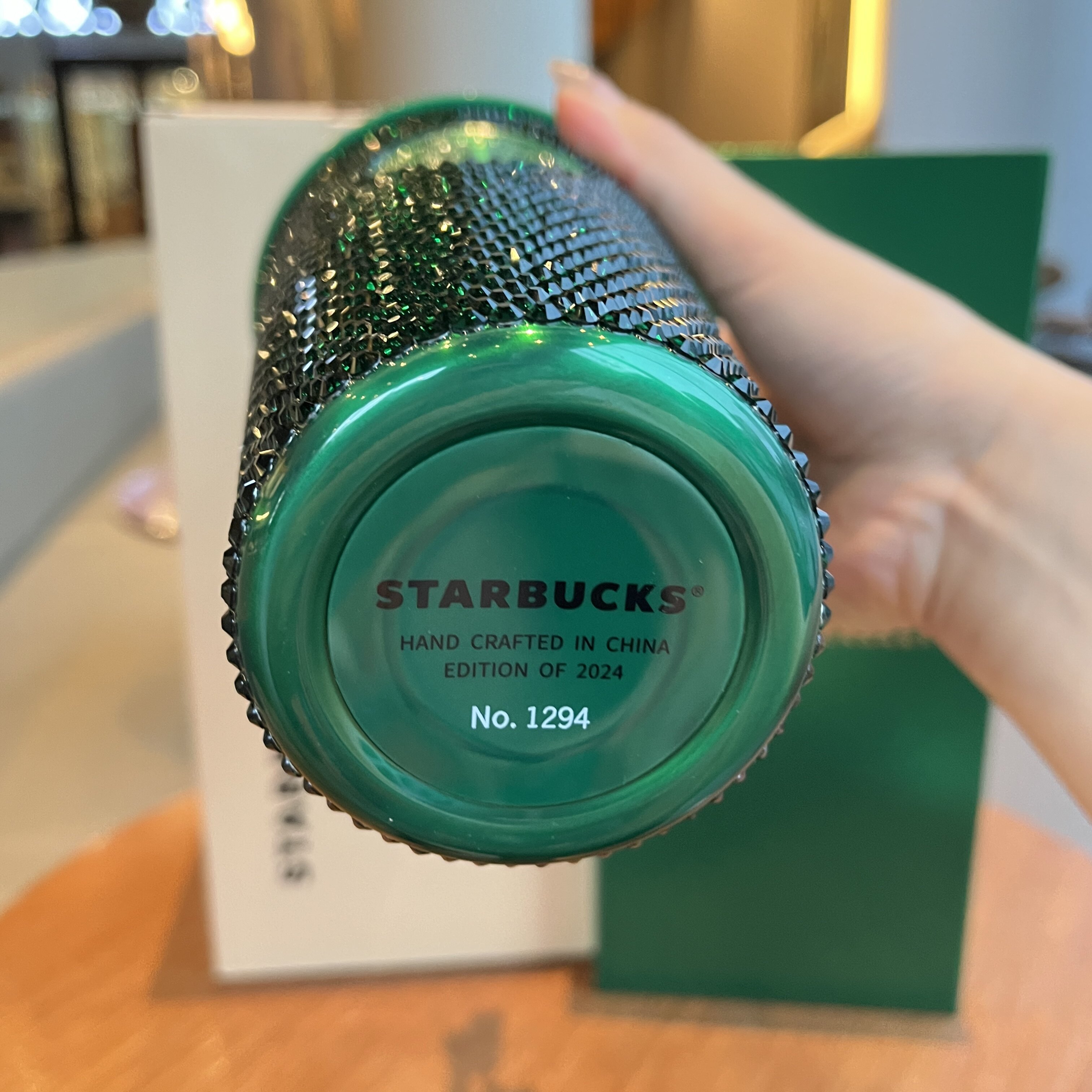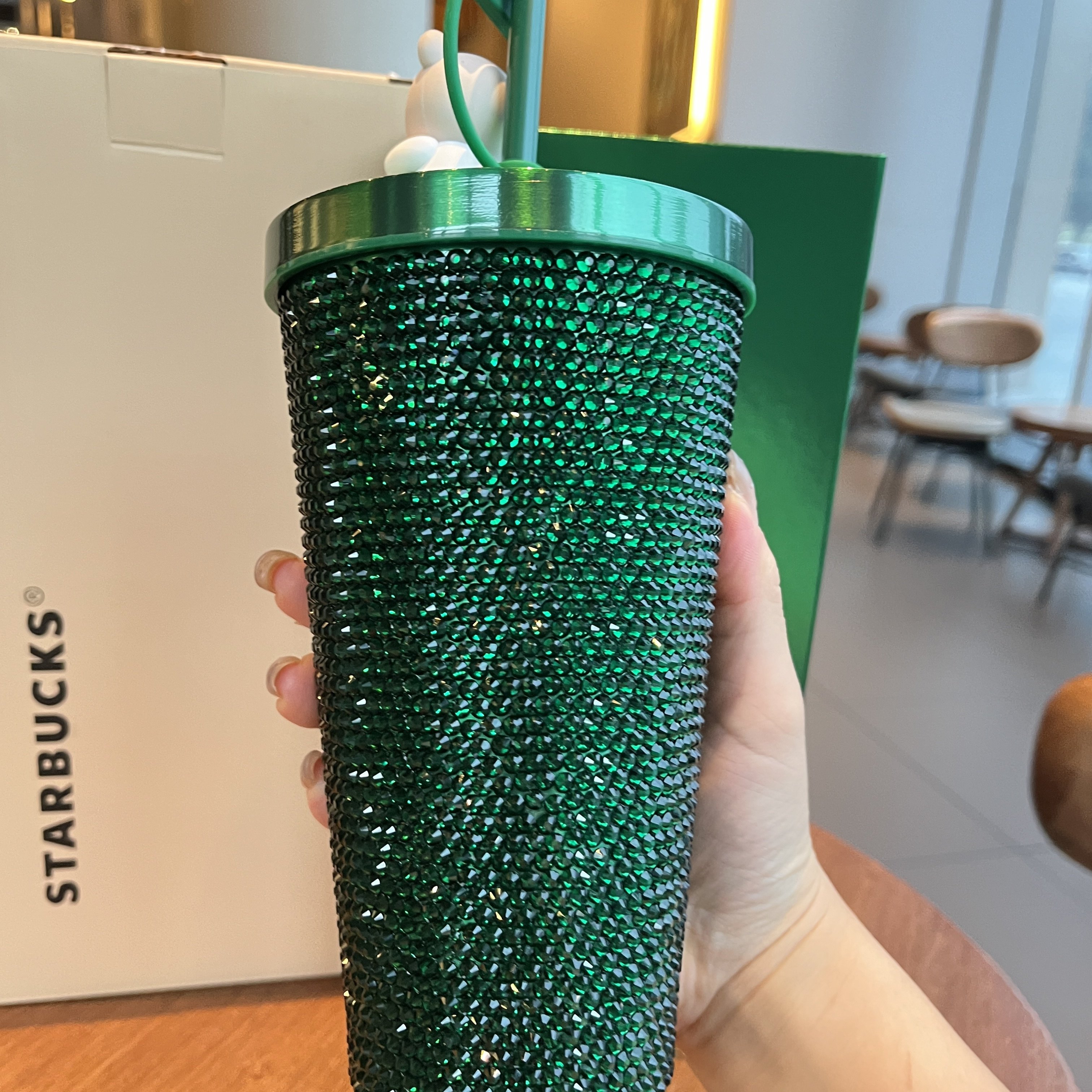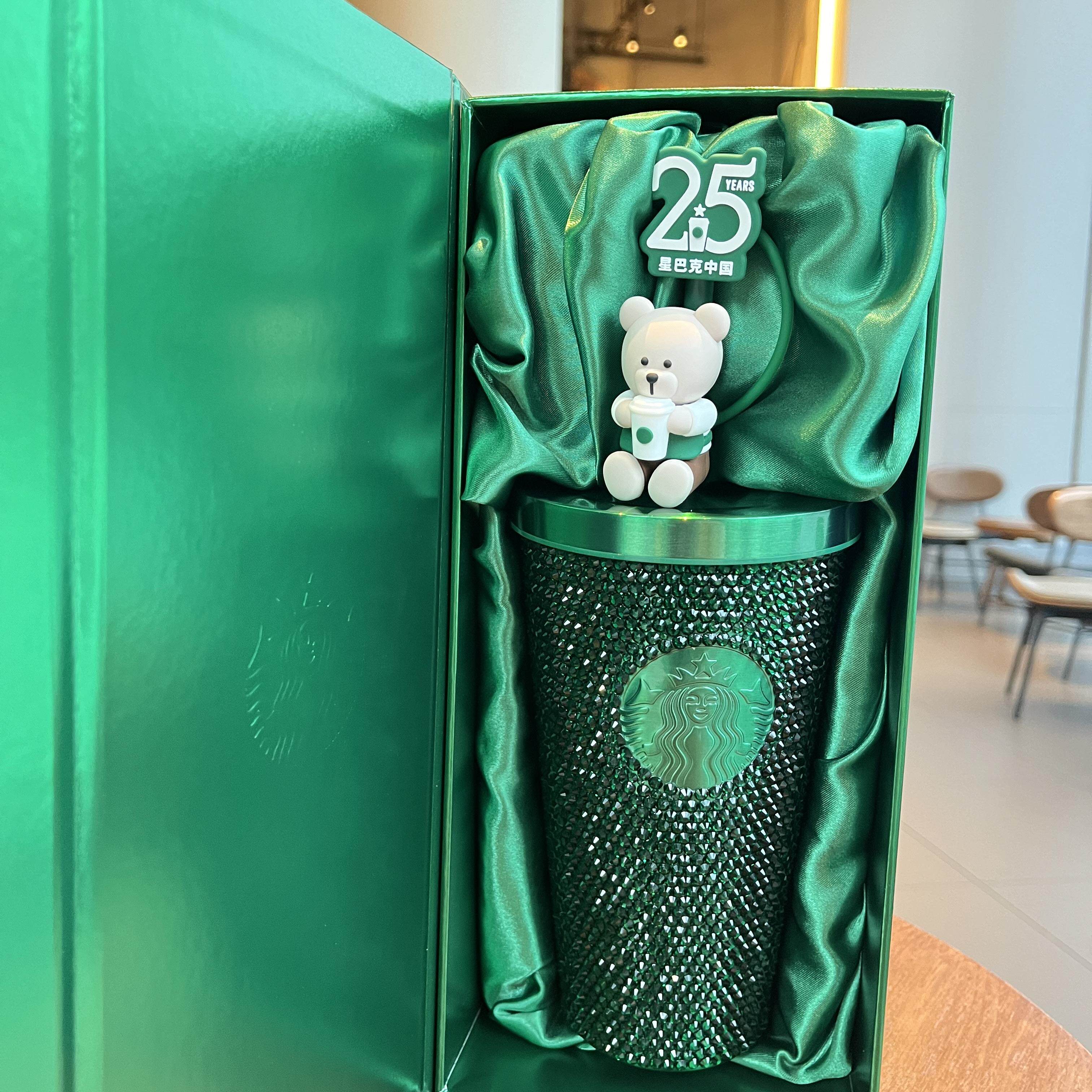2024星巴克杯子25周年庆系列绿色钻面造型不锈钢吸管杯形摆件收藏