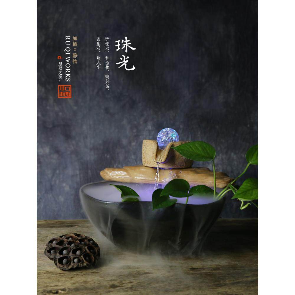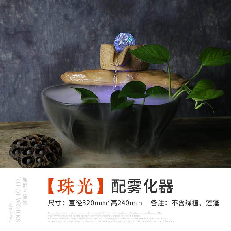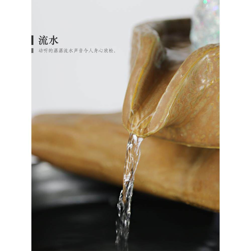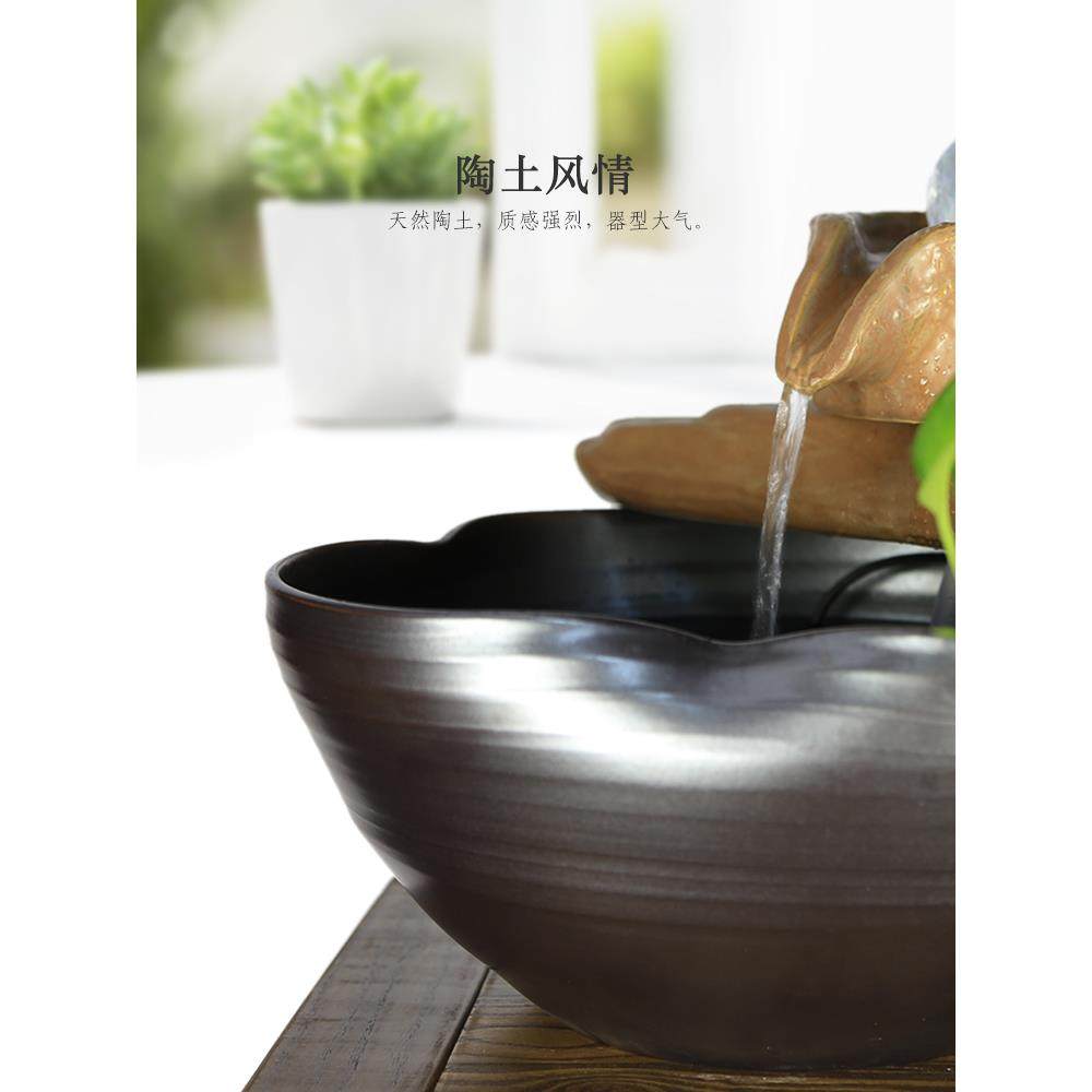 高档客厅水轮招财流水泉鱼缸公室桌面流风水摆件喷陶办瓷加湿器风