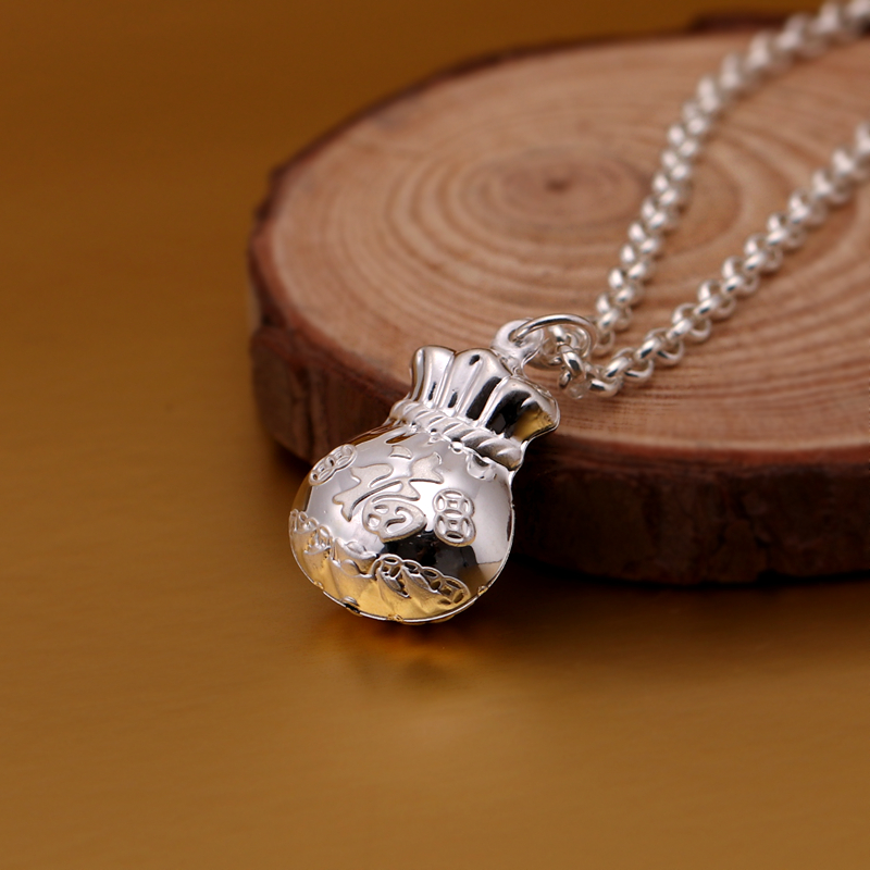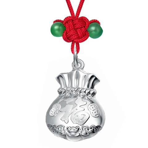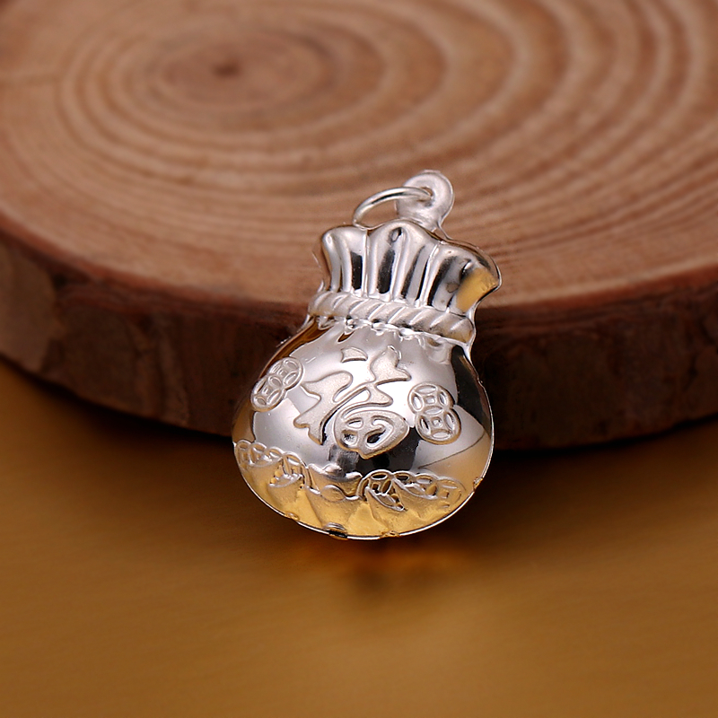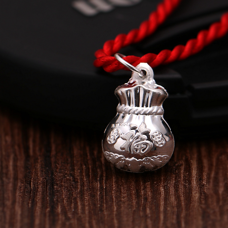 999纯银吊坠大福袋钱袋毛衣链吊坠足银饰 国男女挂件红绳配饰挂坠