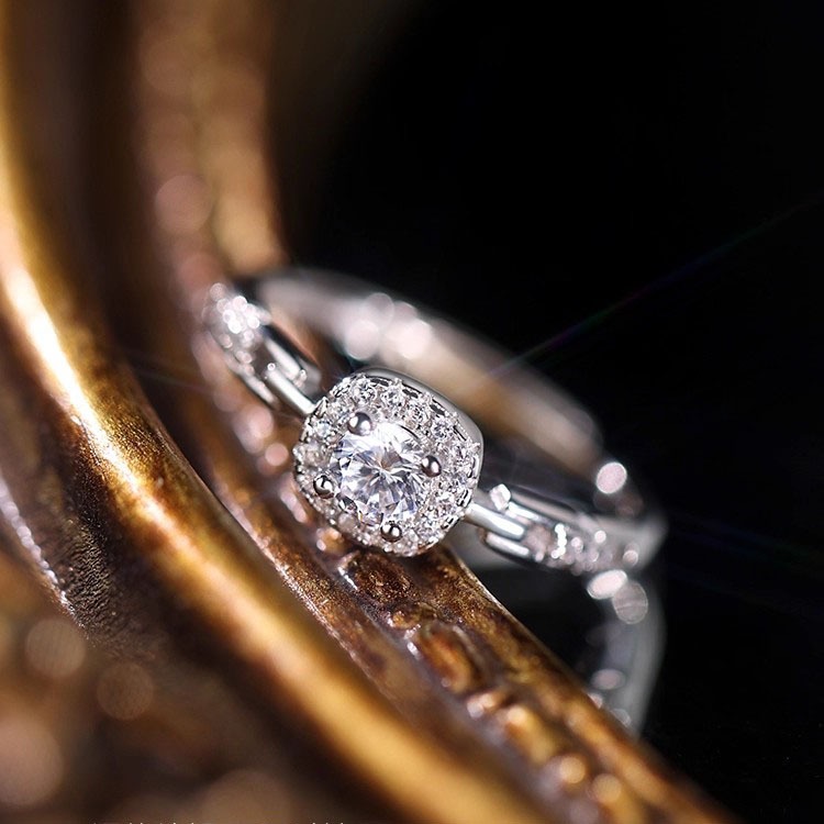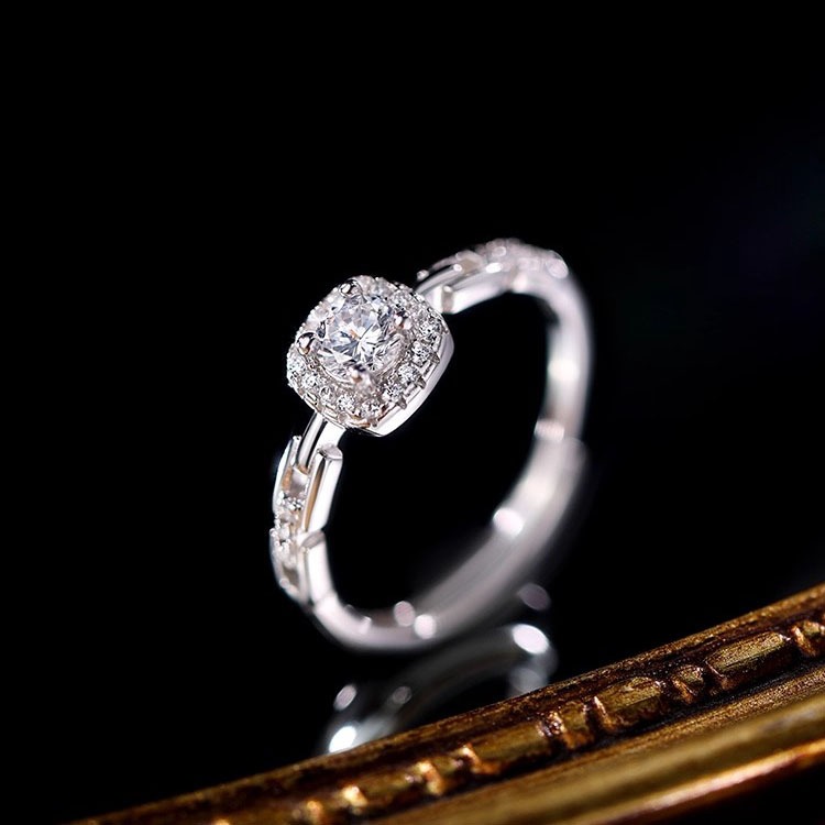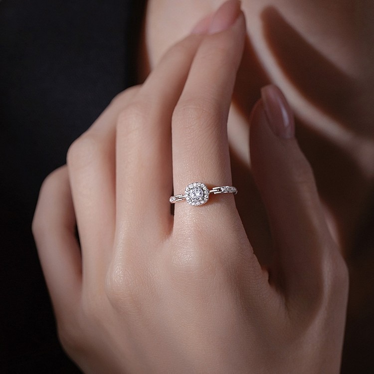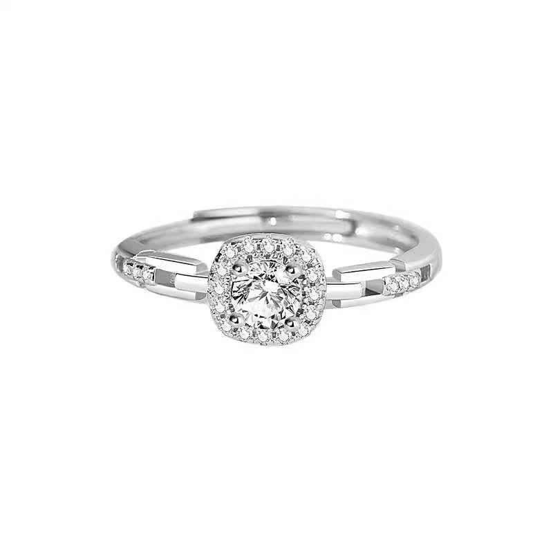 新款999纯银方钻戒指轻奢小众设计食指戒高级感开口戒女送女友