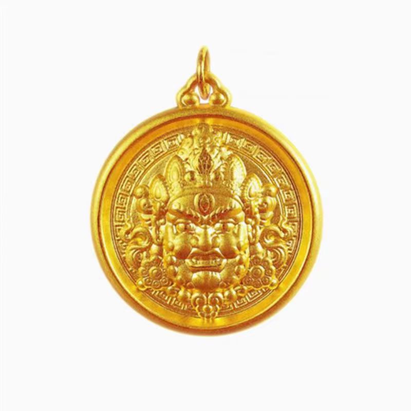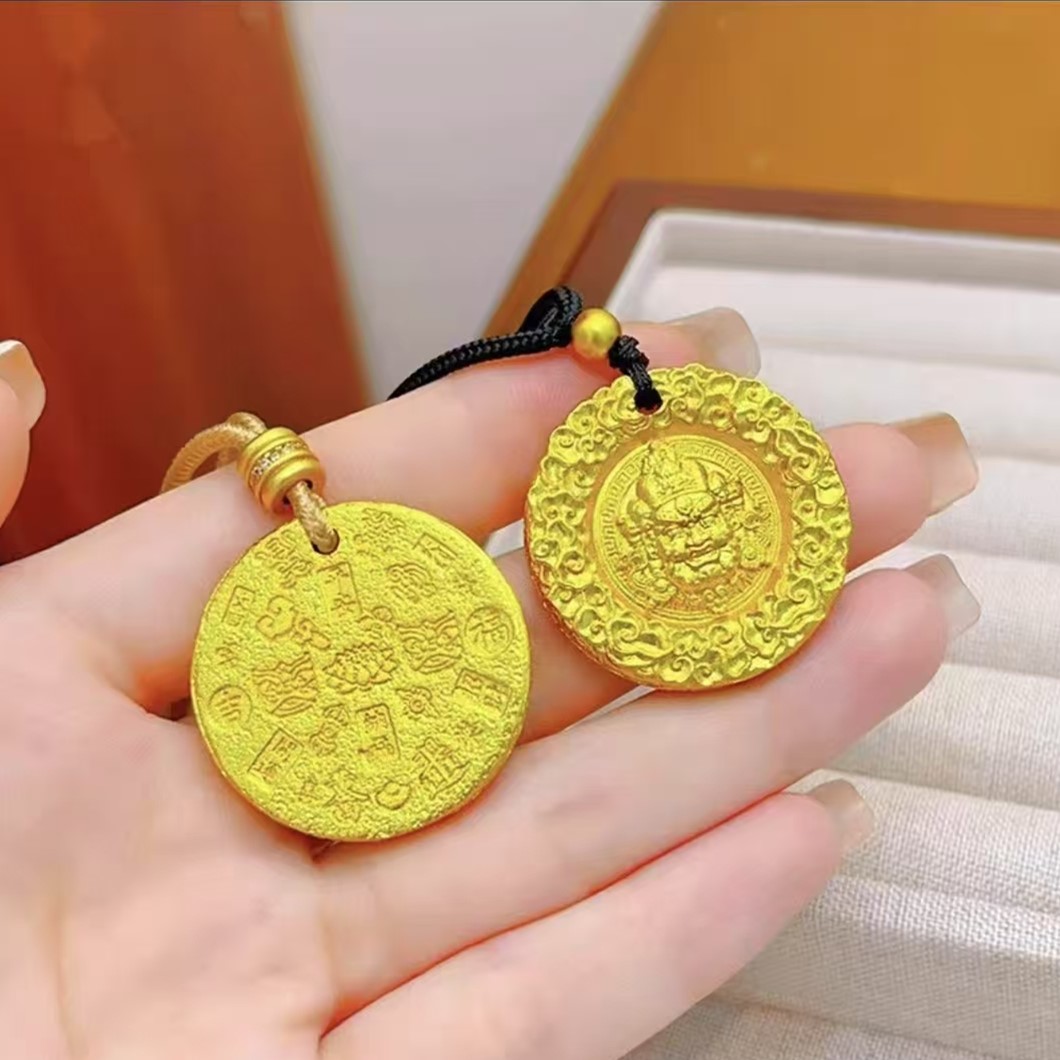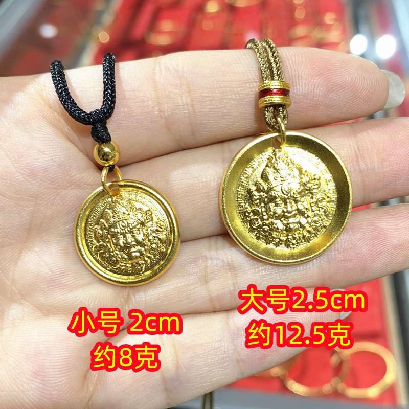 古法金包银黄财神吊坠女锤纹项链本命年锁骨链毛衣链男礼物送女友