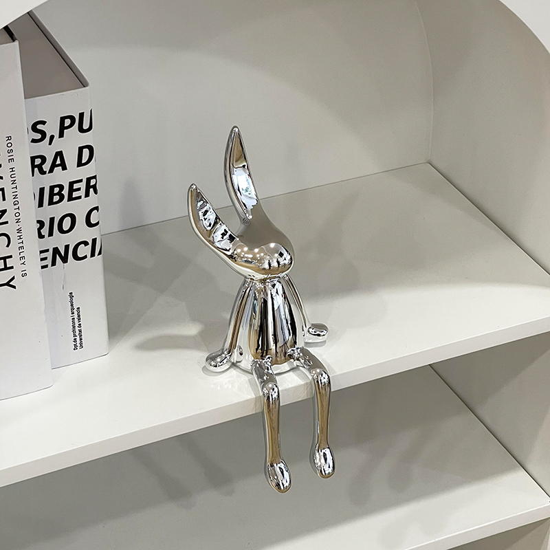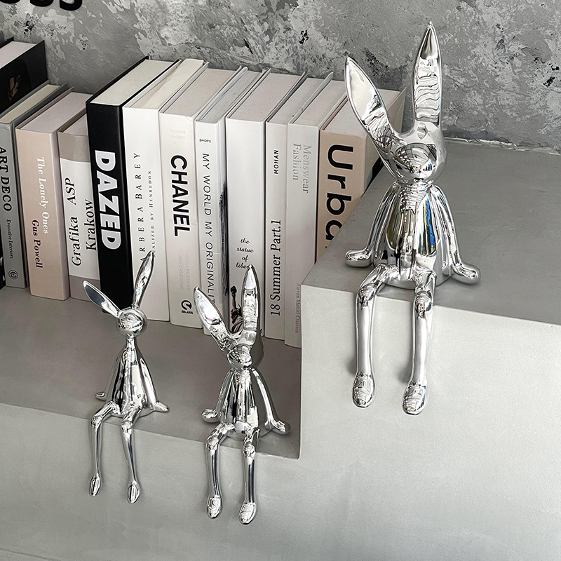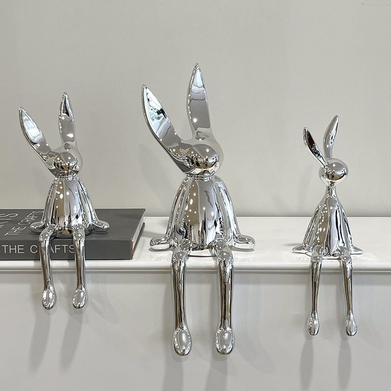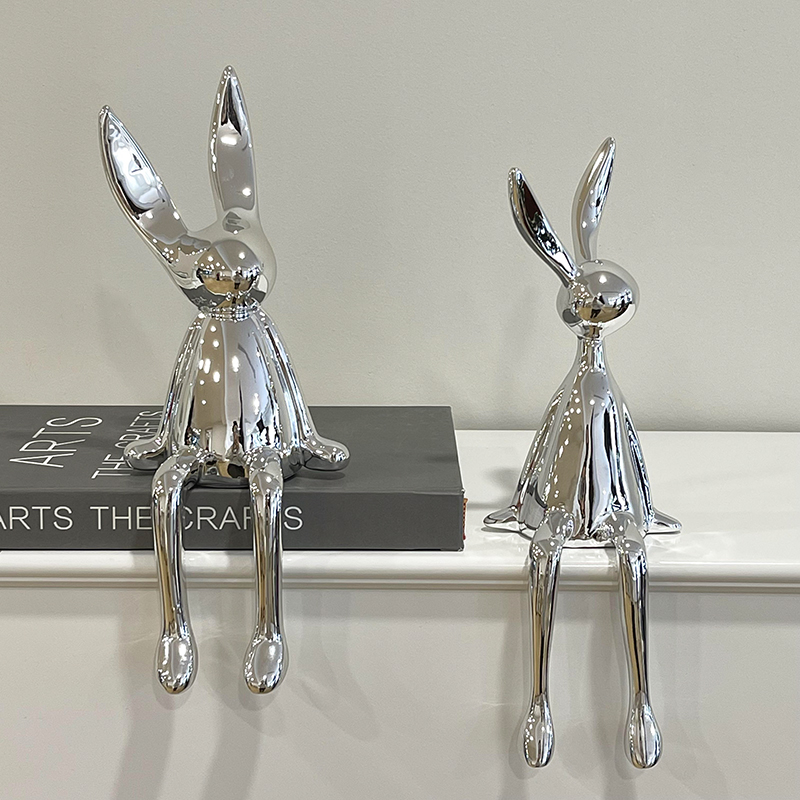 现代创意坐姿银色电镀小兔子办公室装饰摆件轻奢风家居桌面摆件