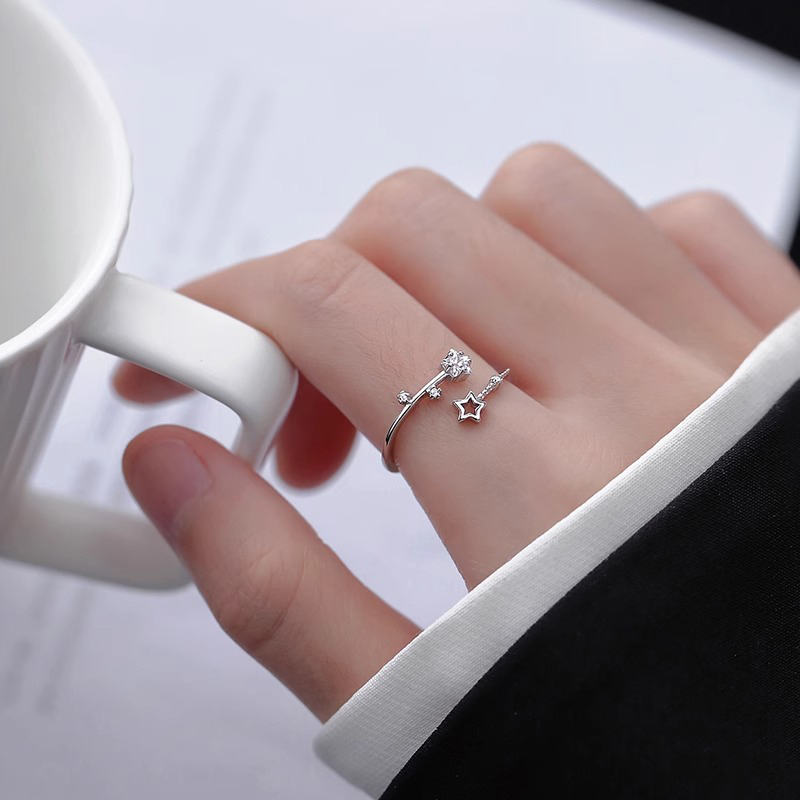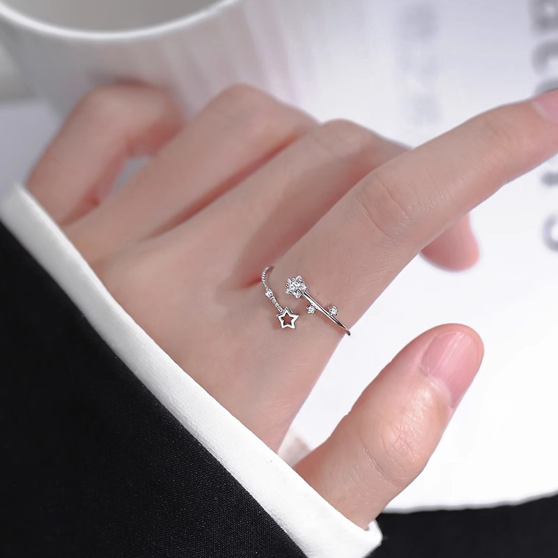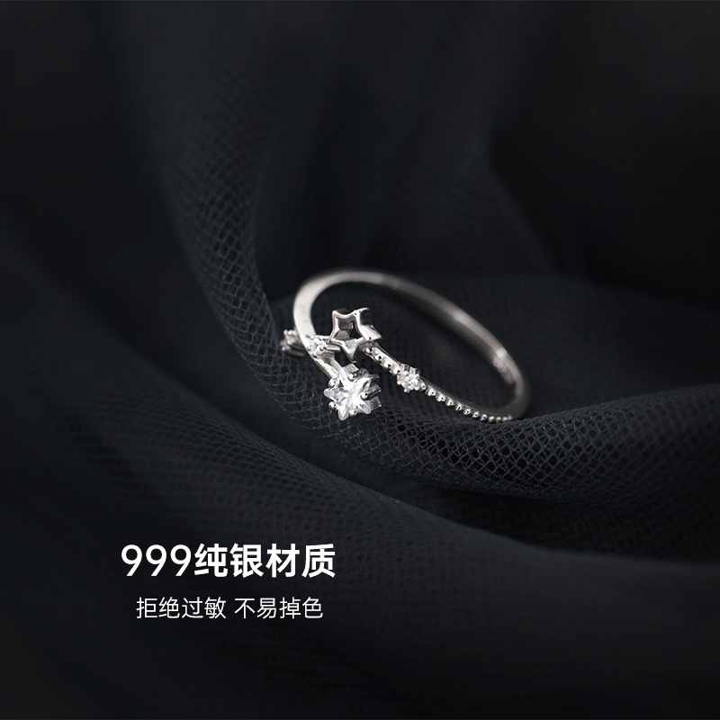 纯银999戒指女星愿小众食指开口戒足银指环情人节送女友生日礼物