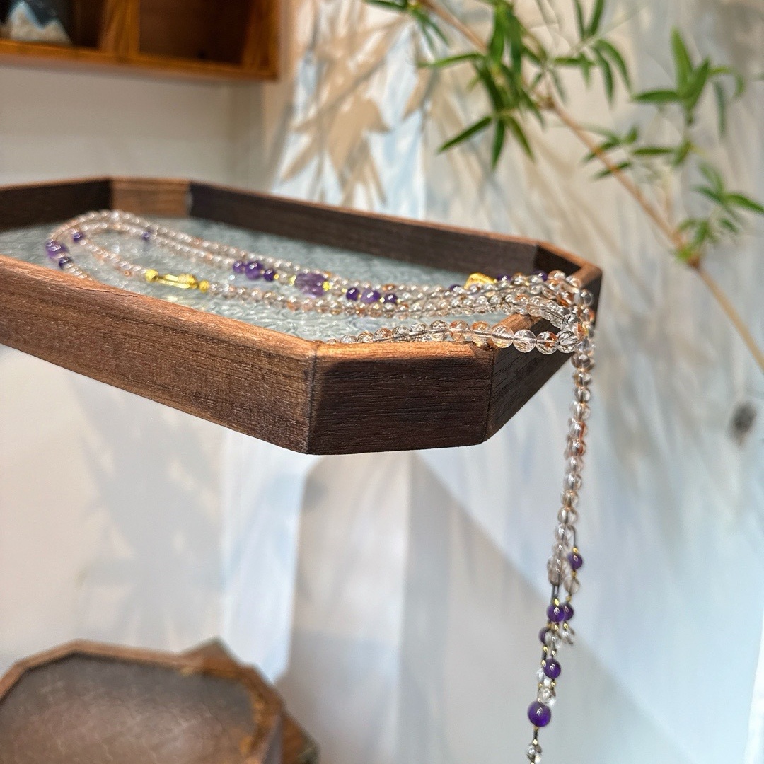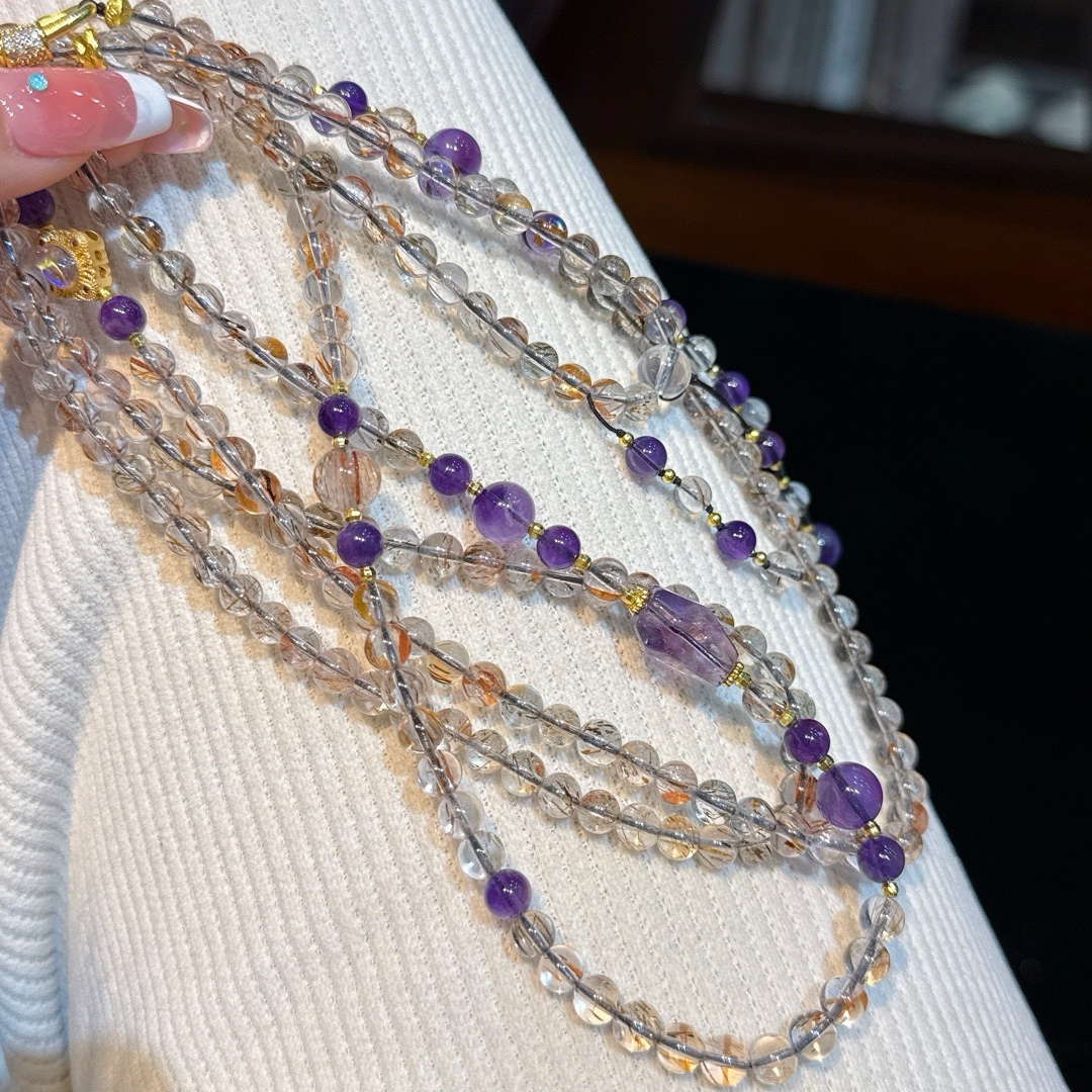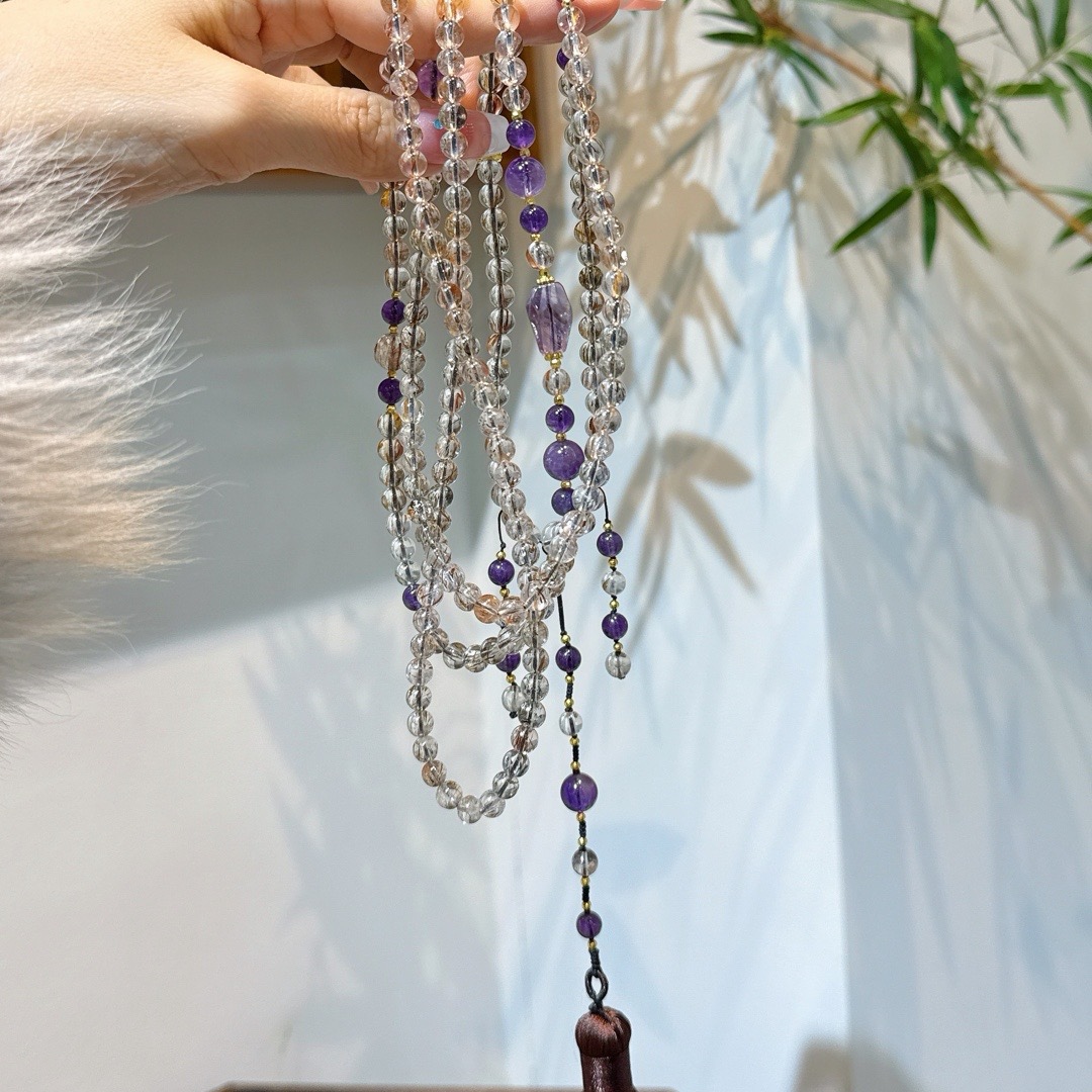 天然黑金超七多圈水晶手链招财发晶108颗佛珠手串男女长款项链