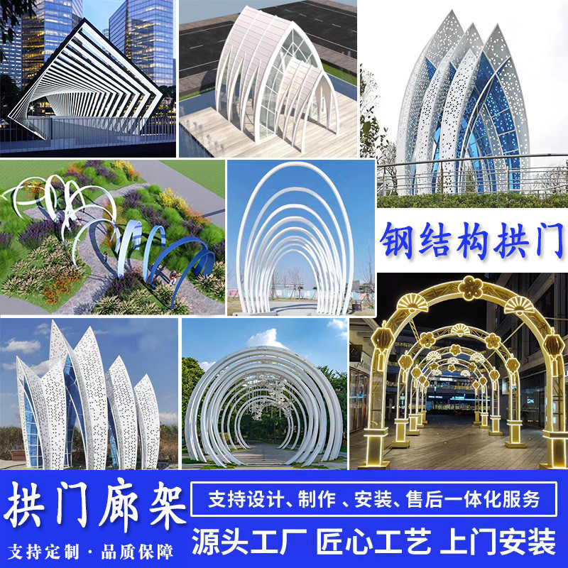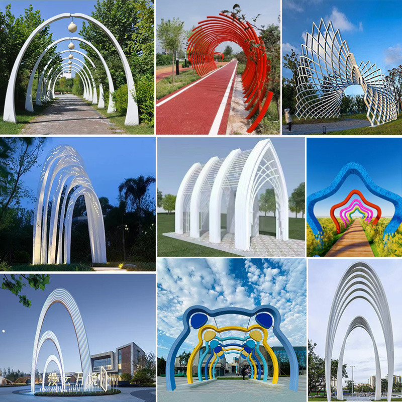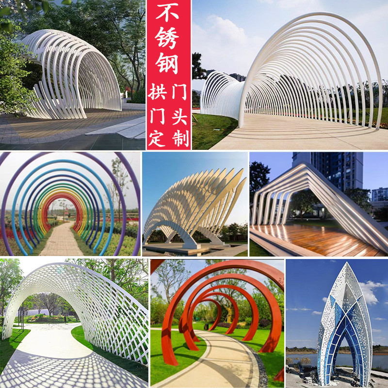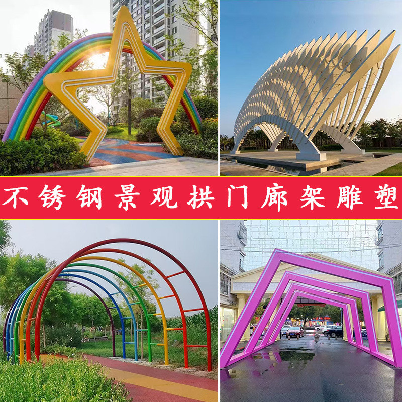 不锈钢拱门廊架雕塑定制户外广场园林景观铁艺景观门过街彩色门头